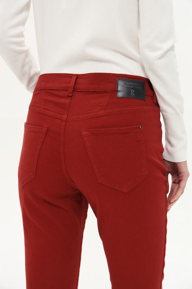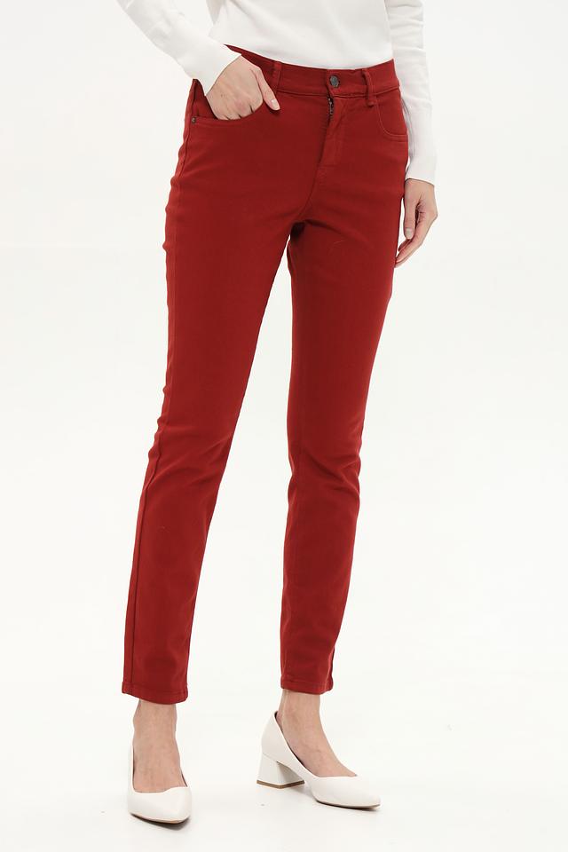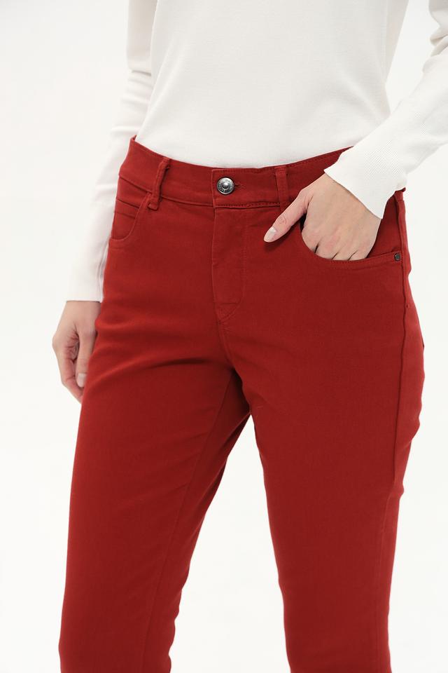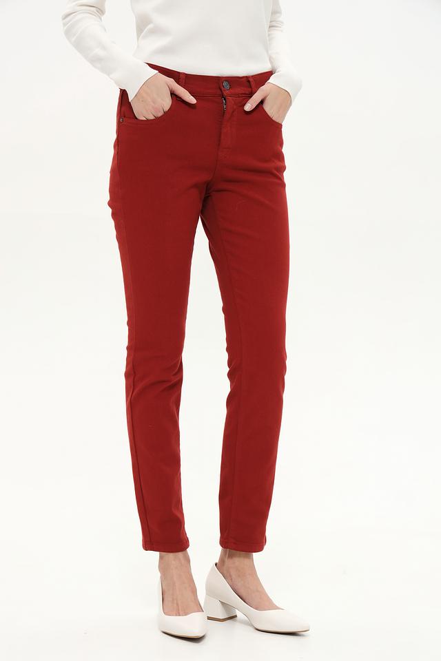 Классический крой и насыщенный винный цвет делают эти джинсы универсальными. Они легко сочетаются с различными элементами одежды, от повседневных футболок до элегантных блузок и жакетов. Застежка на молнию и пуговицу, стандартная высота пояса. Джинсы имеют два боковых и два задних кармана.