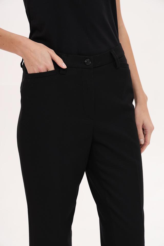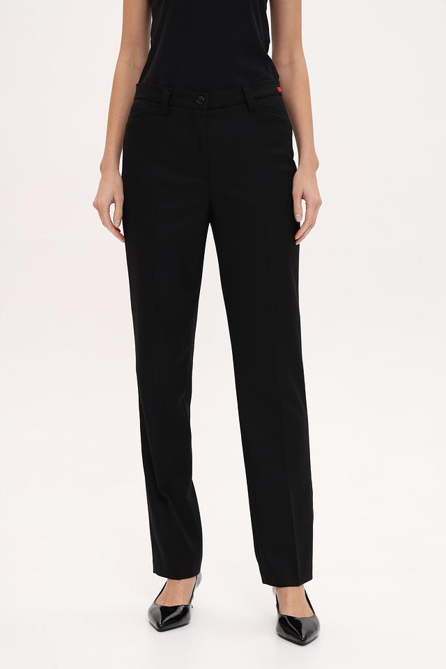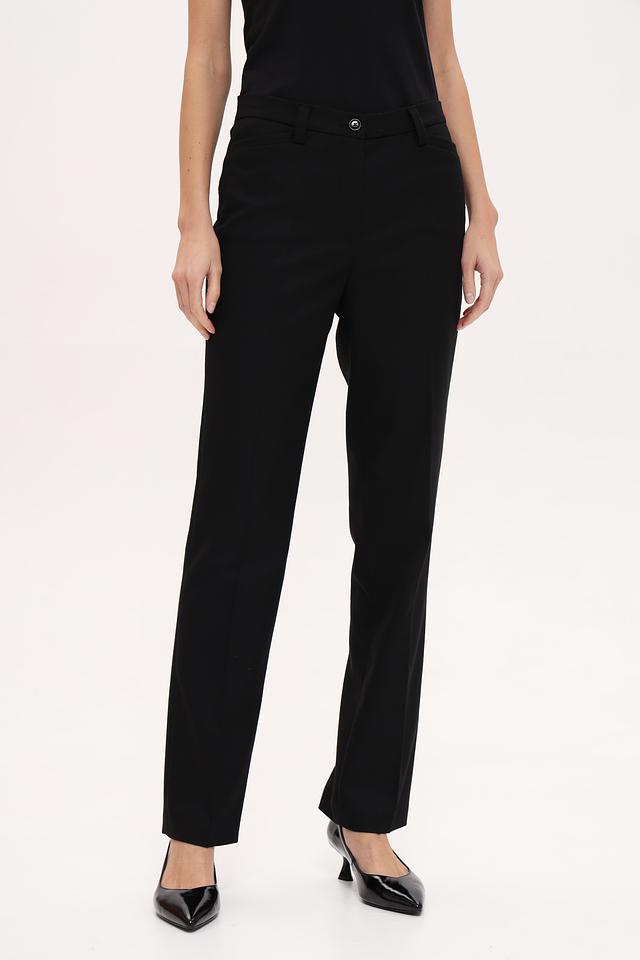 Чёрные классические брюки Gardeur из смесовой ткани с добавлением шерсти. Модель прямого кроя с поясом на пуговицах и стандартной посадкой. Состав: шерсть 45%, полиэстер 32%, полиакрил 16%, шелк 5%, эластан 2%
