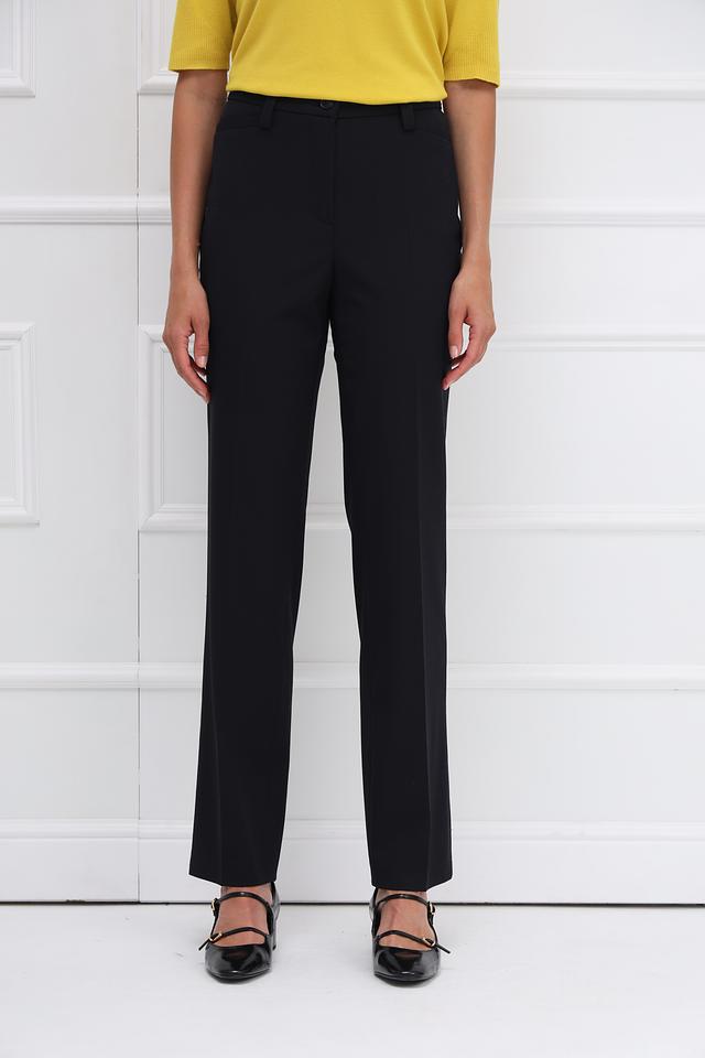 Чёрные классические брюки Gardeur из сочетания полиэстера, шерсти и эластана. Модель прямого кроя, с высокой посадкой и стандартной длиной. Идеальный выбор для создания элегантного образа. Состав: полиэстер 54%, шерсть 41%, эластан 5%