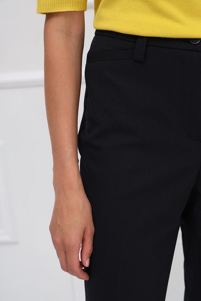 Состав ткани: 54% полиэстер, 41% шерсть, 5% эластан. Такое сочетание материалов обеспечивает брюкам прочность, износостойкость и приятные тактильные ощущения. Эластан добавляет эластичность, что делает брюки более комфортными в носке.