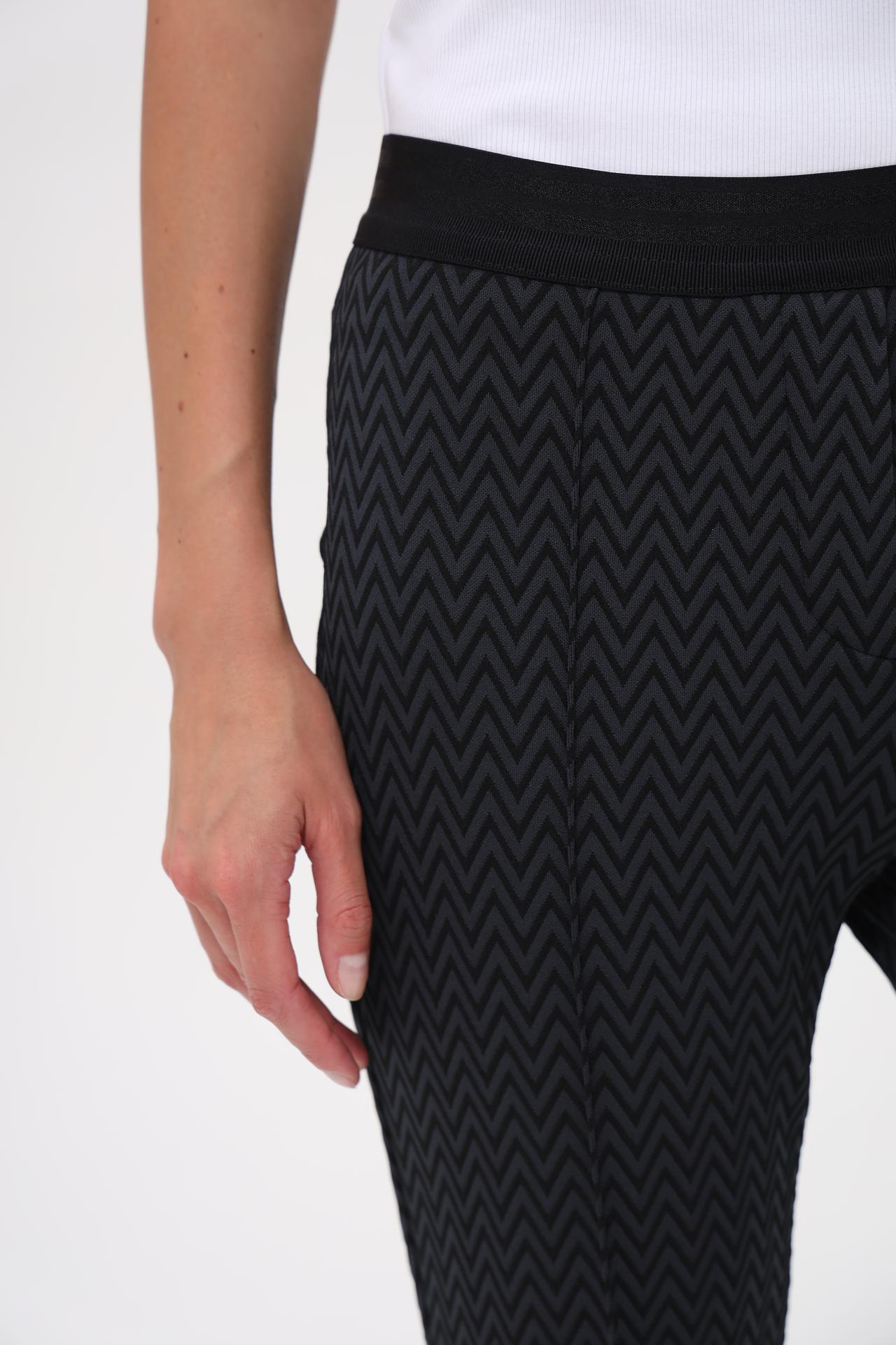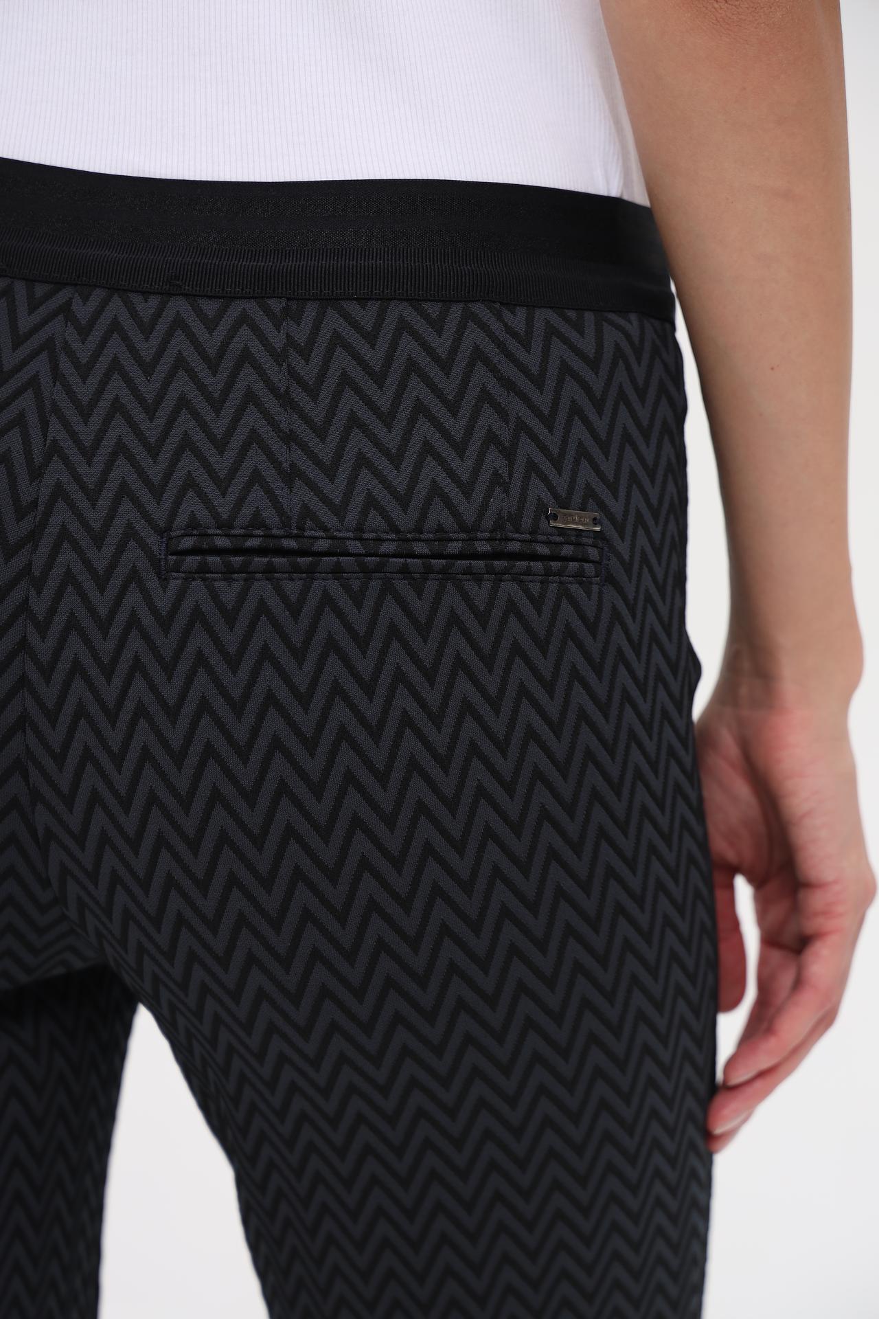 Элегантные брюки Gardeur выполнены в классическом чёрном цвете с ненавязчивым геометрическим принтом в виде зигзагов. Модель прекрасно садится по фигуре, обеспечивая комфорт на весь день. Идеальный выбор для создания стильных повседневных и деловых образов.
