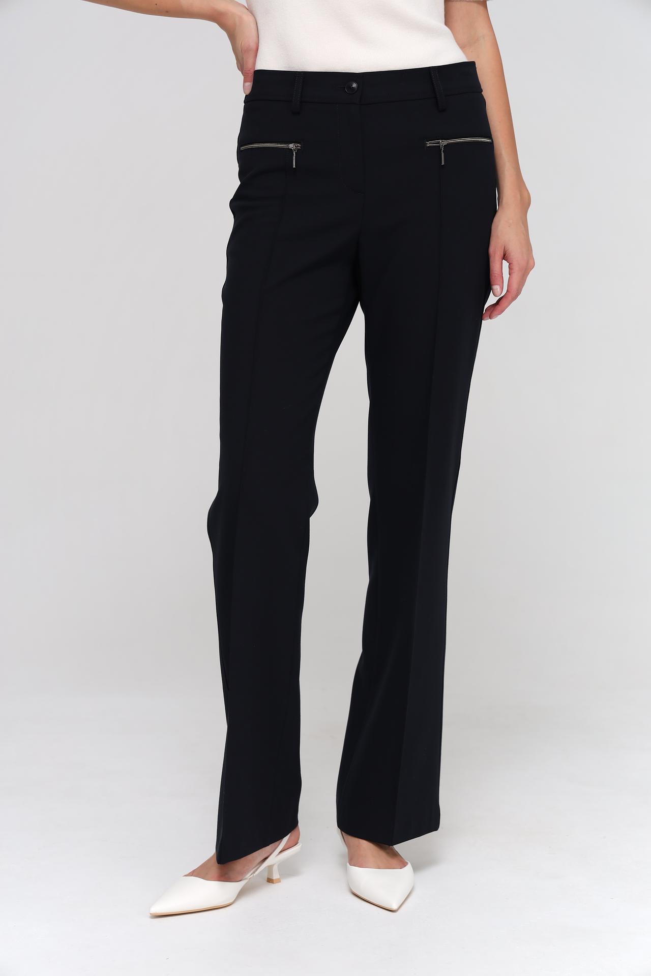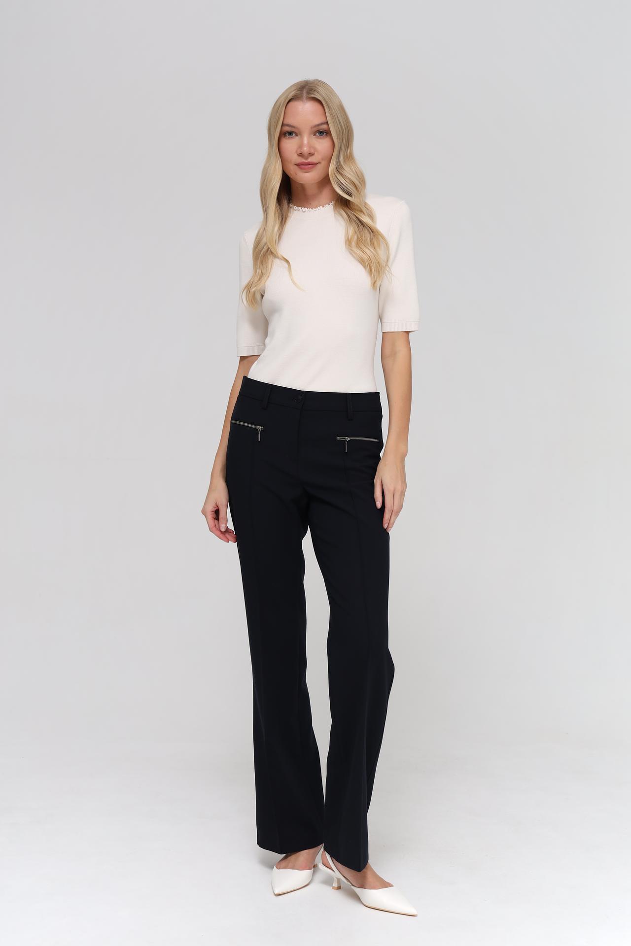 Элегантный дизайн подчеркивается стильными декоративными элементами. Небольшие молнии на передних карманах добавляют изделию изюминку и делают его более современным. Классический прямой крой визуально удлиняет ноги, а аккуратные стрелки придают образу завершенность. Брюки застегиваются на пуговицу и молнию, обеспечивая идеальную посадку.