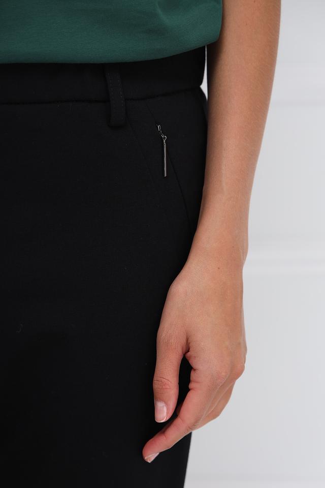 Детали кроя включают в себя аккуратные боковые карманы и задние карманы с декоративной отделкой. Застежка на молнию и пуговицу обеспечивает надежную фиксацию. Эти брюки станут отличным выбором для создания как повседневных, так и более формальных образов.