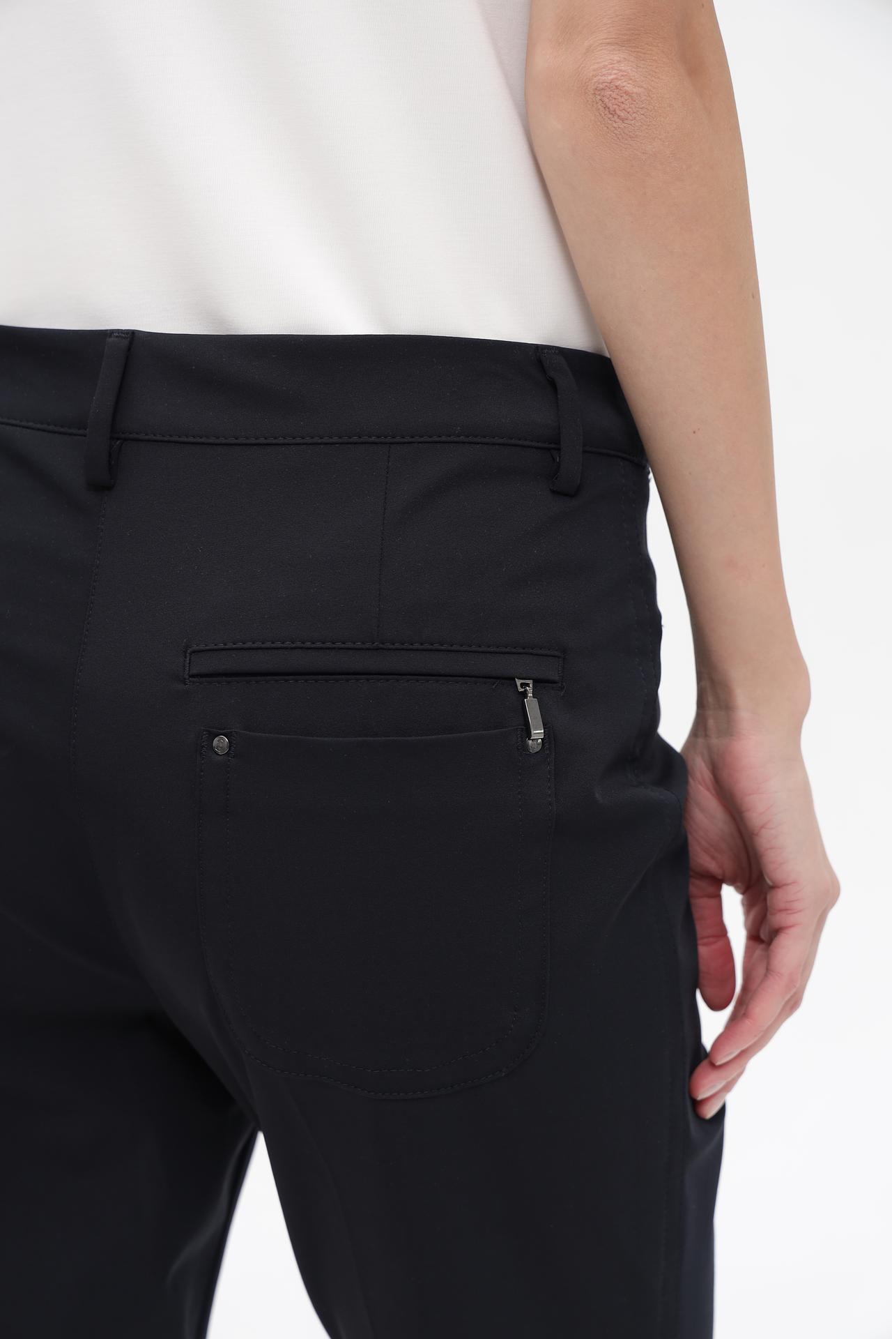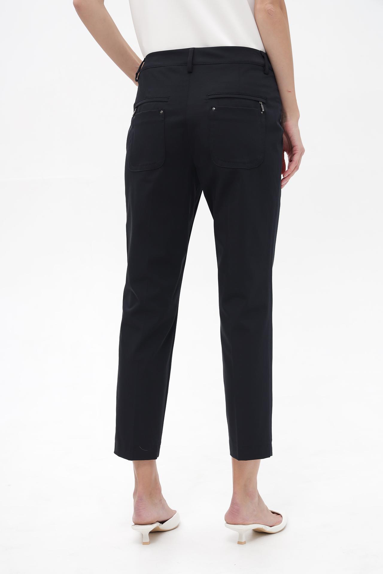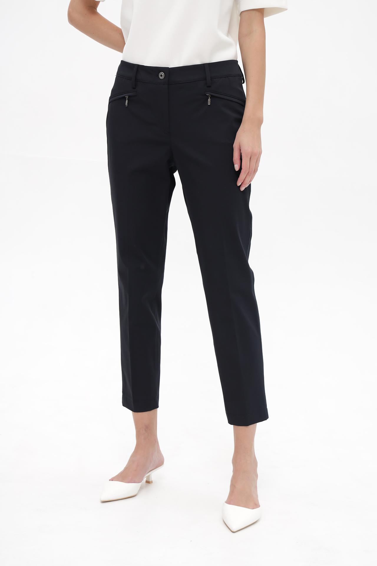 - Детали: Брюки оснащены функциональными карманами с декоративными молниями, которые добавляют изюминку в дизайн. Застежка на молнии и пуговице обеспечивает надежную фиксацию.