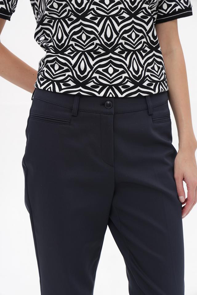 Укороченные брюки Gardeur классического темно-синего цвета, выполнены из хлопка с добавлением полиамида и эластана. Отличаются удобным кроем и практичностью. Состав: хлопок 63%, полиамид 34%, эластан 3%
