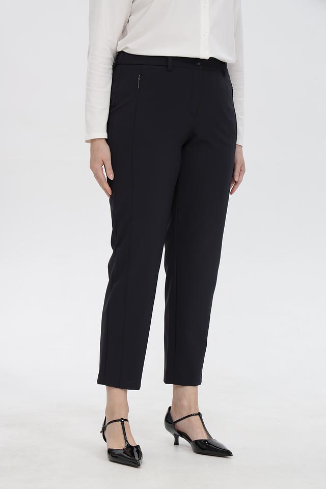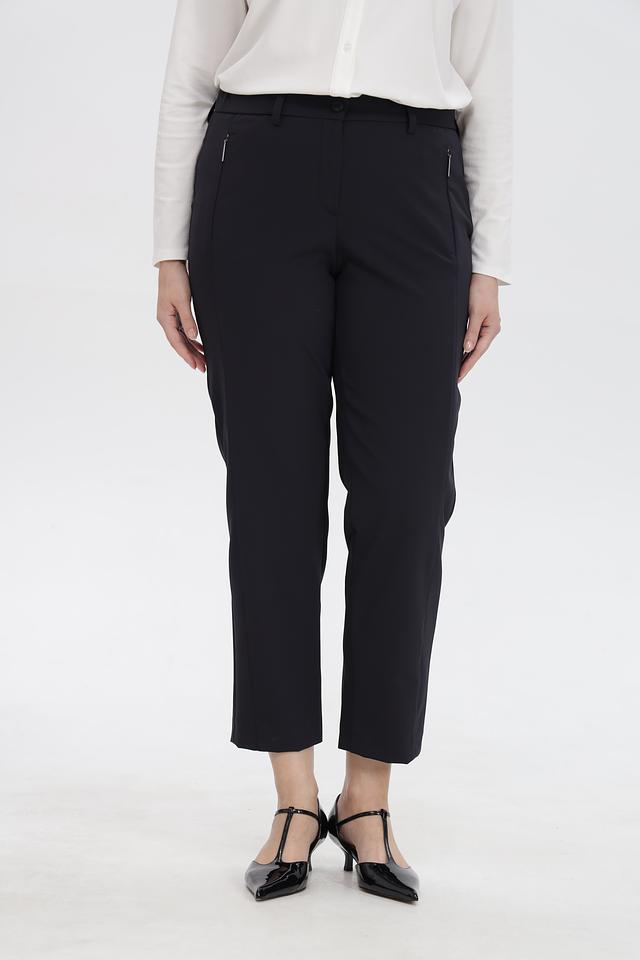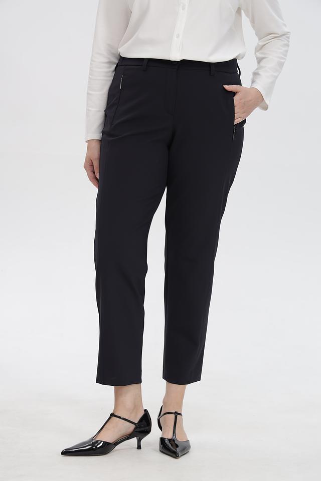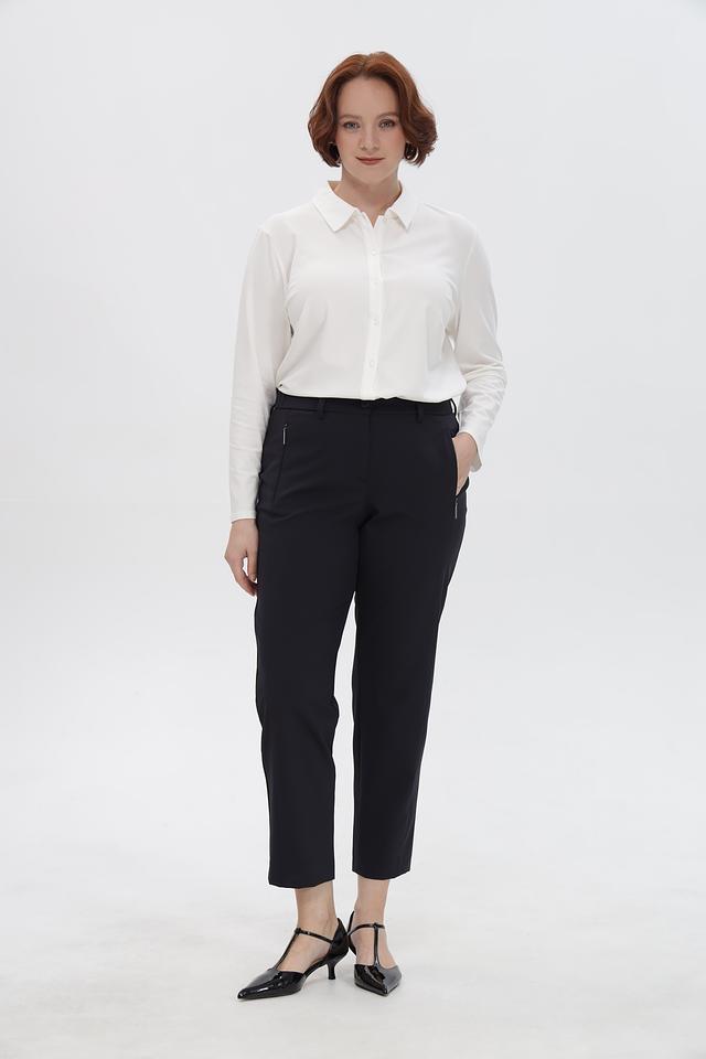 Застежка на молнию и крючок, а также боковые карманы делают брюки практичными и функциональными. Укороченная длина идеально подходит для создания современных и стильных образов. Данная модель станет незаменимой частью вашего делового или повседневного гардероба.