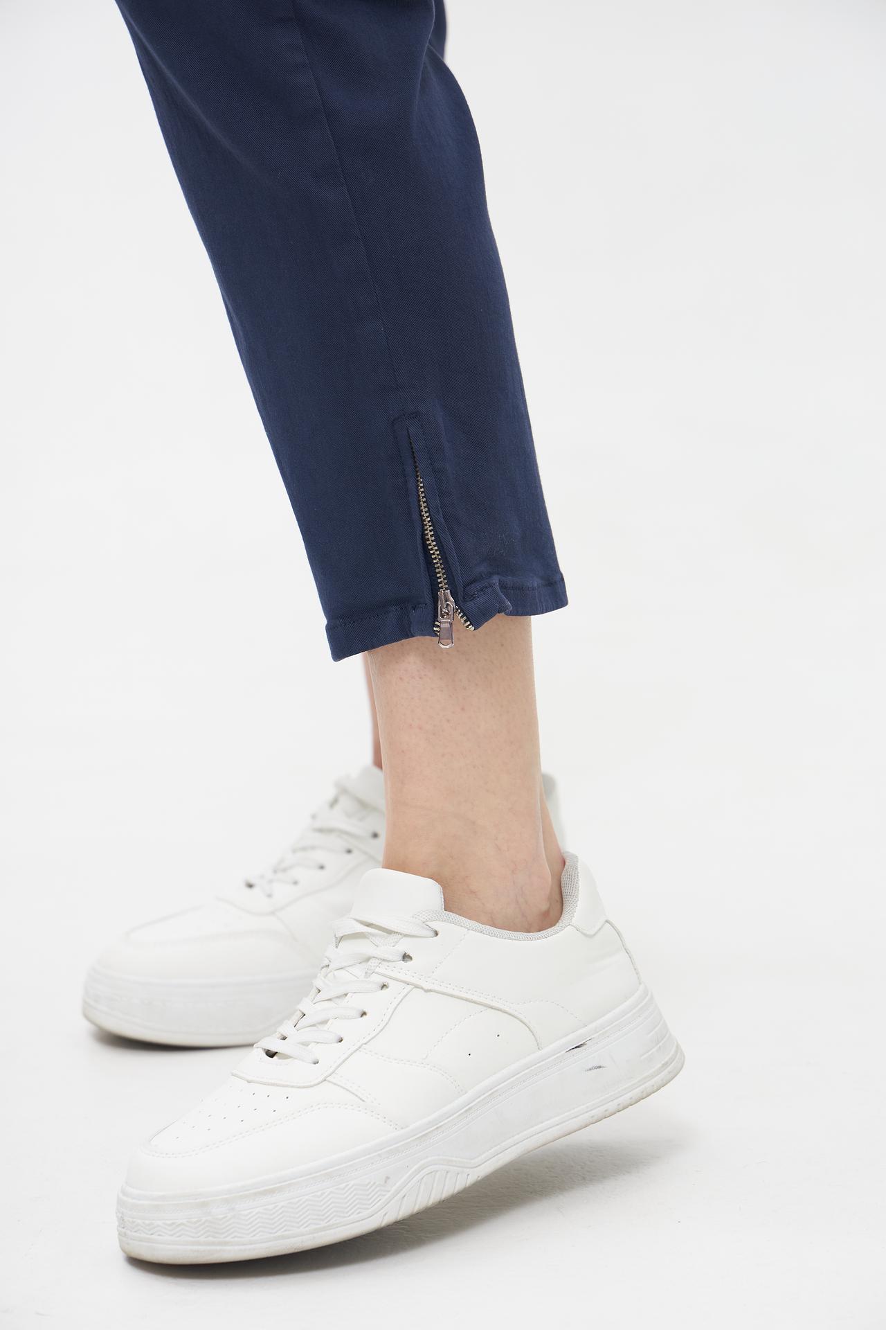 - Универсальность: Синий цвет и минималистичный дизайн позволяют легко сочетать эти брюки с различной одеждой и обувью, создавая как повседневные, так и более формальные образы.