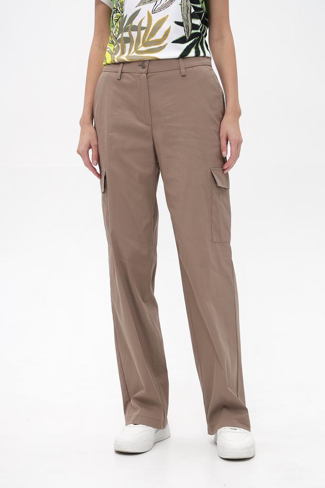 Брюки имеют прямой крой, который обеспечивает свободу движений и комфорт при носке. Наличие накладных карманов добавляет функциональности и стиля. Застежка на пуговицу и молнию обеспечивает надежную фиксацию.