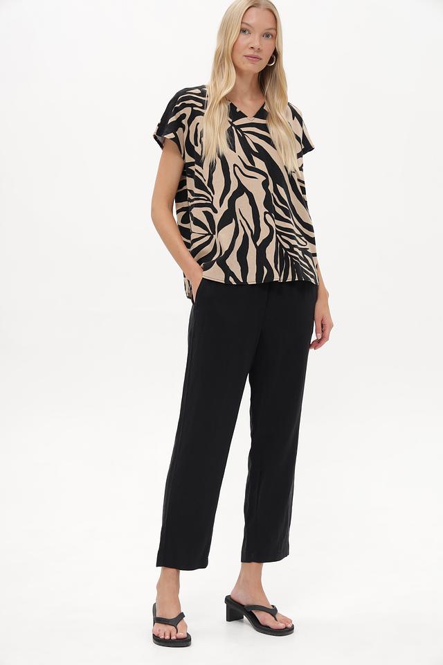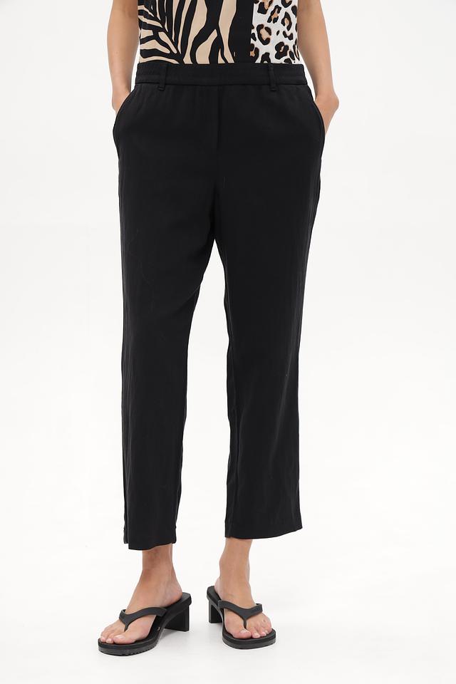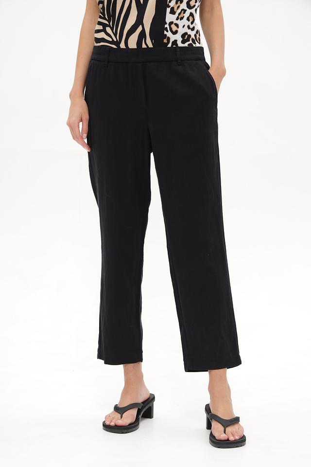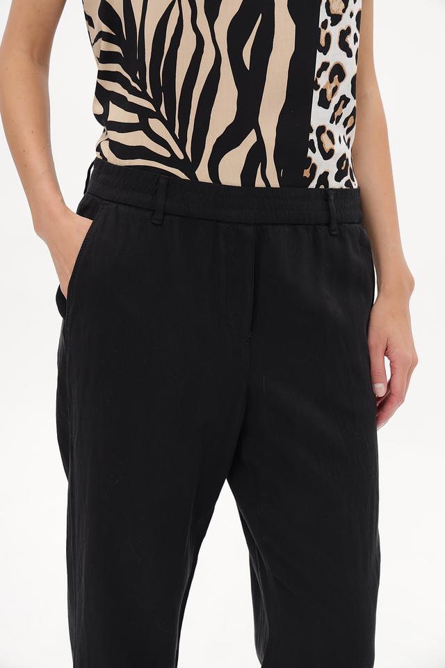 Состав ткани: 60% лиоцел, 24% лен, 14% хлопок, 2% эластан. Такое сочетание материалов обеспечивает воздухопроницаемость, мягкость и лёгкость в уходе. Брюки приятны к телу и не сковывают движения.