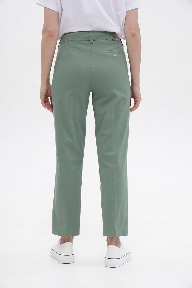 Брюки изготовлены из высококачественного хлопка (97%) с добавлением эластана (3%), что обеспечивает приятные тактильные ощущения, воздухопроницаемость и небольшую эластичность. Классический пояс на пуговицах и аккуратные боковые карманы делают эту модель универсальной и подходящей для различных образов.