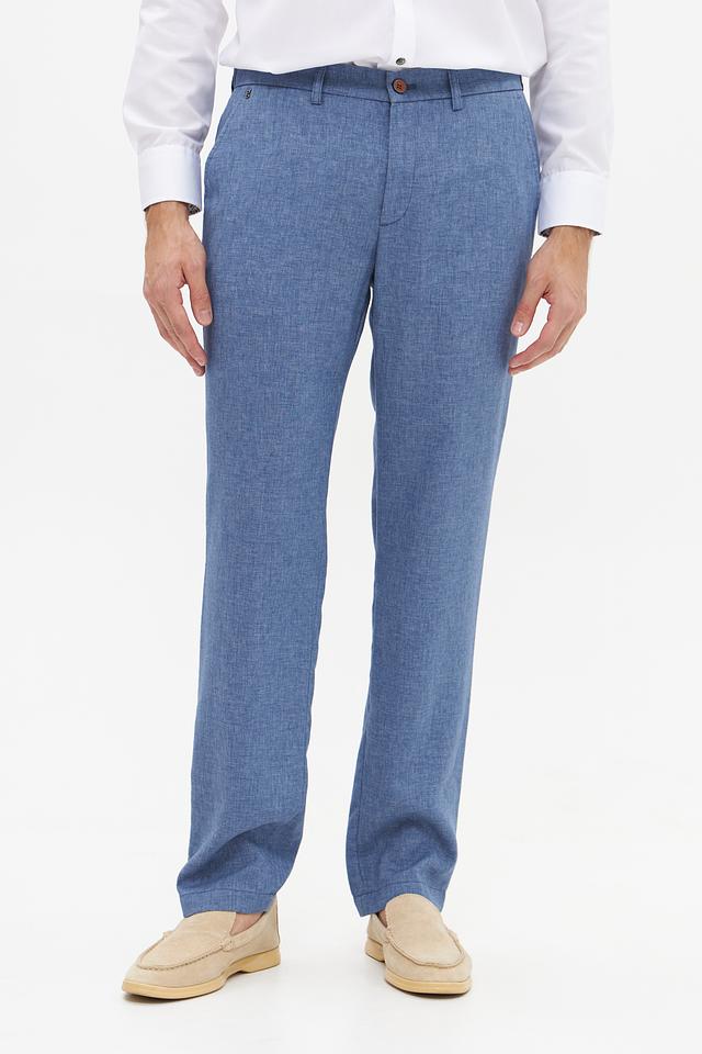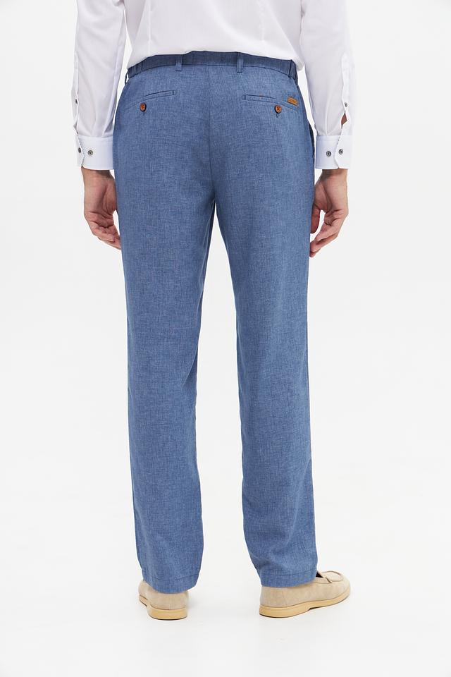 Ткань сочетает в себе прочность полиэстера и натуральность льна, что обеспечивает долговечность и комфорт в носке. Брюки идеально подойдут для создания как повседневных, так и более формальных образов. Наличие задних прорезных карманов.