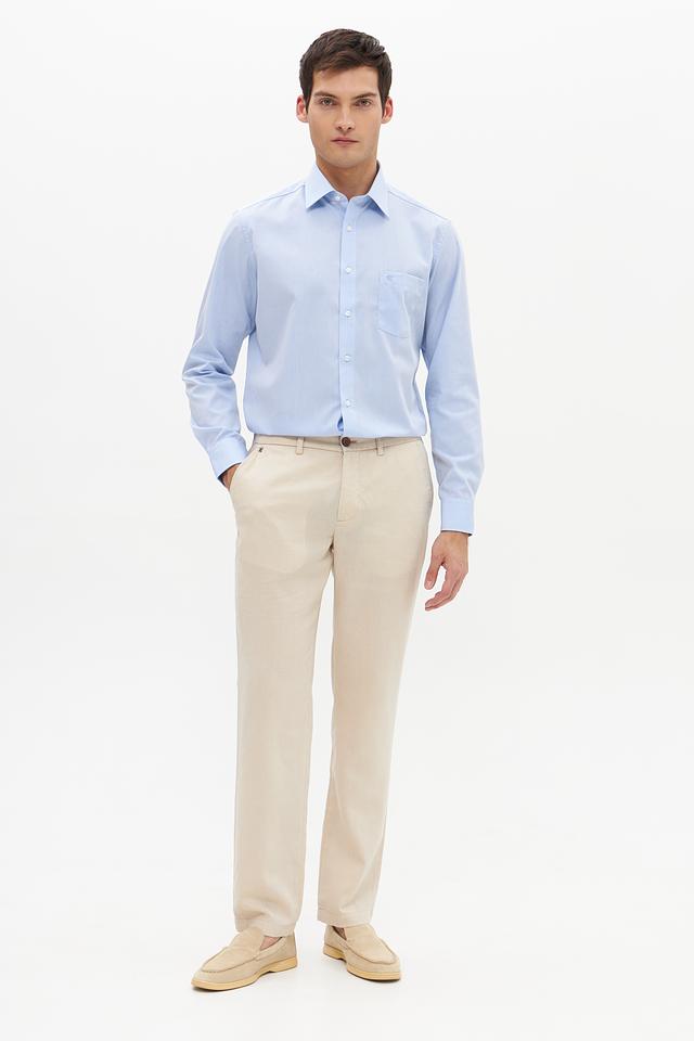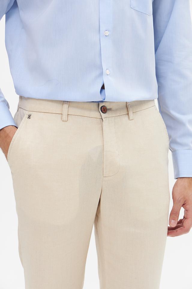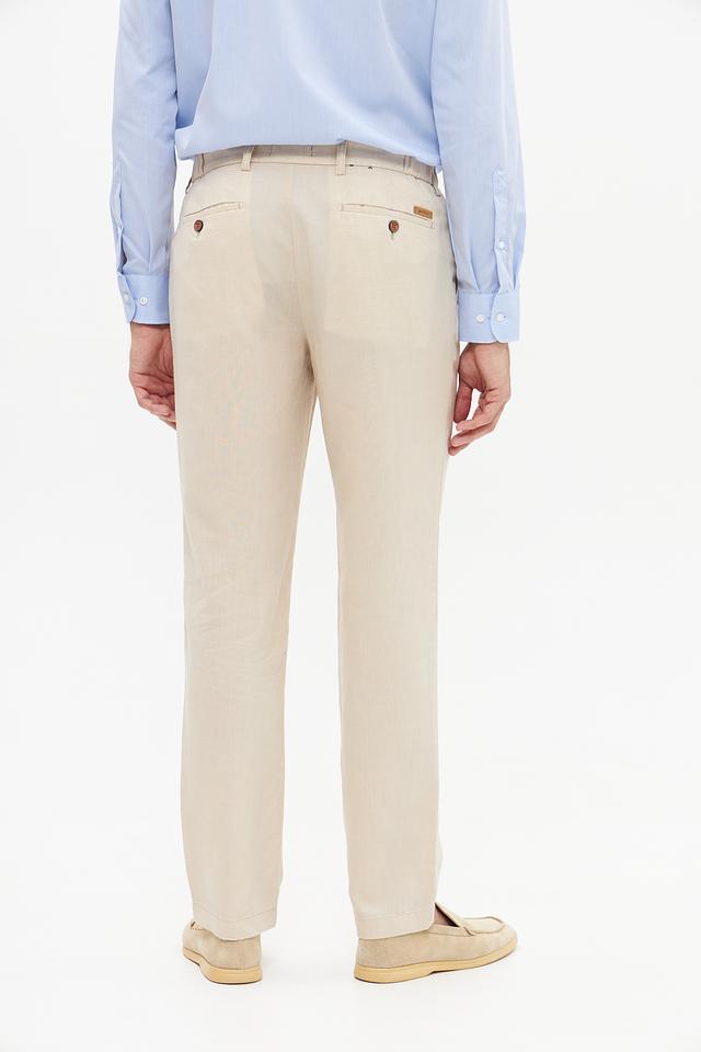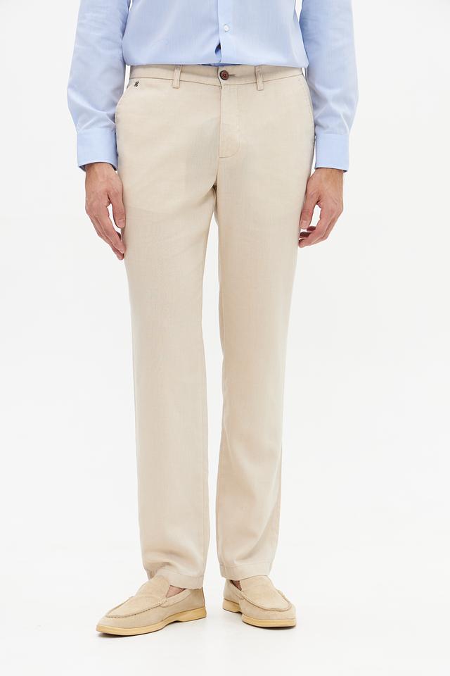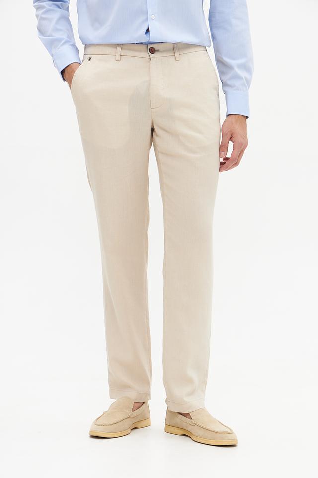 Брюки изготовлены из высококачественного смесового материала, сочетающего в себе 50% полиэстера и 50% льна. Это сочетание обеспечивает прочность, износостойкость и приятные тактильные ощущения. Лен добавляет воздухопроницаемость и лёгкость, что особенно актуально в тёплую погоду.