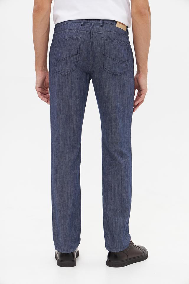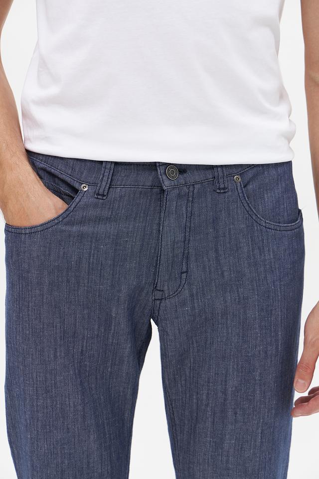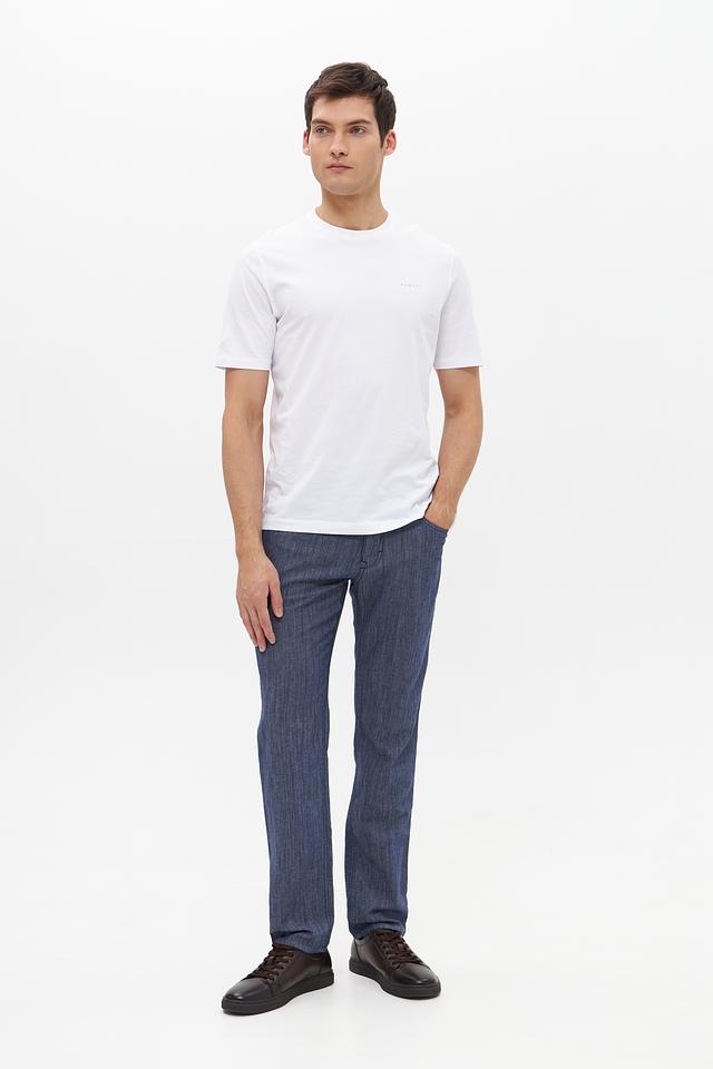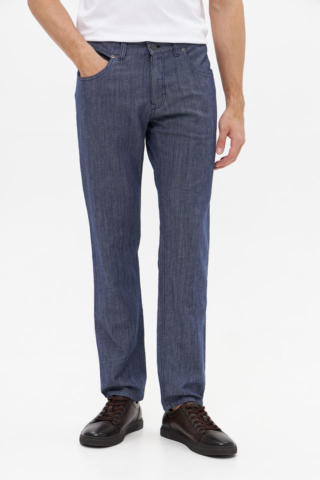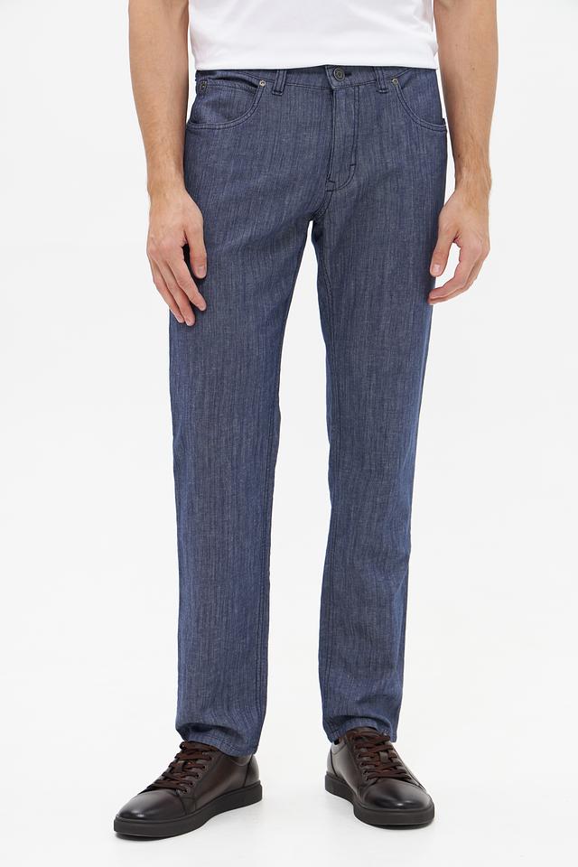 Брюки имеют прямой крой, который обеспечивает комфортную посадку по фигуре. Ткань состоит из хлопка, льна, луоселла и небольшого процента эластана, что делает их приятными на ощупь и обеспечивает свободу движений. Состав ткани: хлопок 52%, лен 27%, луоселл 20%, эластан 1%.