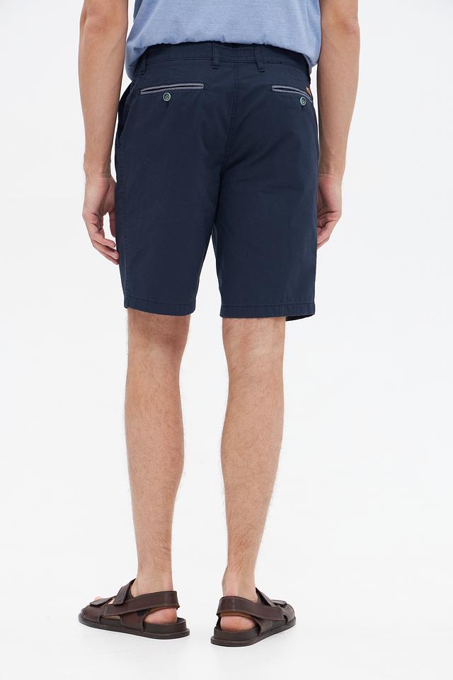 Шорты имеют стандартную посадку на талии, застежку на пуговицу и молнию, а также боковые и задние карманы. Цвет – насыщенный синий, что делает их универсальным элементом гардероба, легко сочетаемым с различными верхами. Шорты идеально подойдут для повседневной носки и создания стильных летних образов.