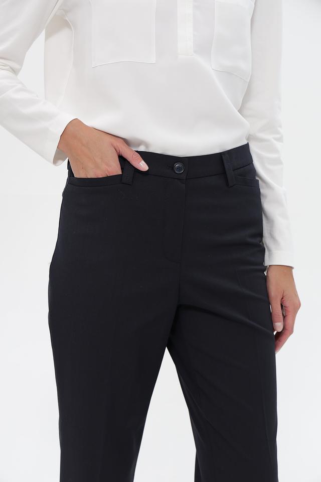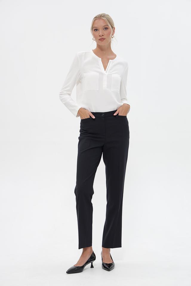 Чёрный цвет делает эти брюки универсальными и легко сочетаемыми с различными элементами одежды. Они прекрасно дополнят блузку, рубашку или свитер, а также подойдут для создания стильного образа с жакетом или пиджаком. Ткань приятна на ощупь и хорошо держит форму.