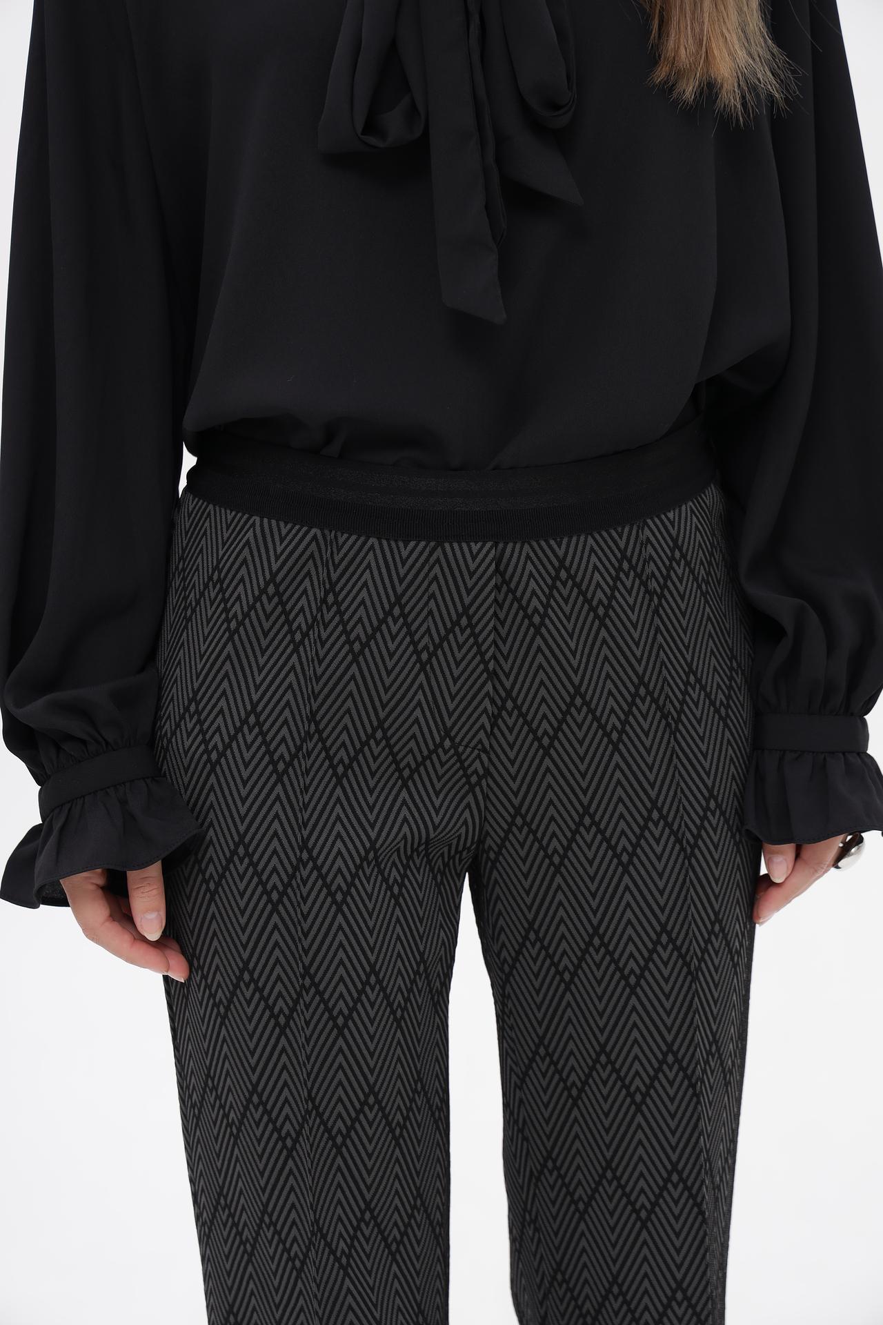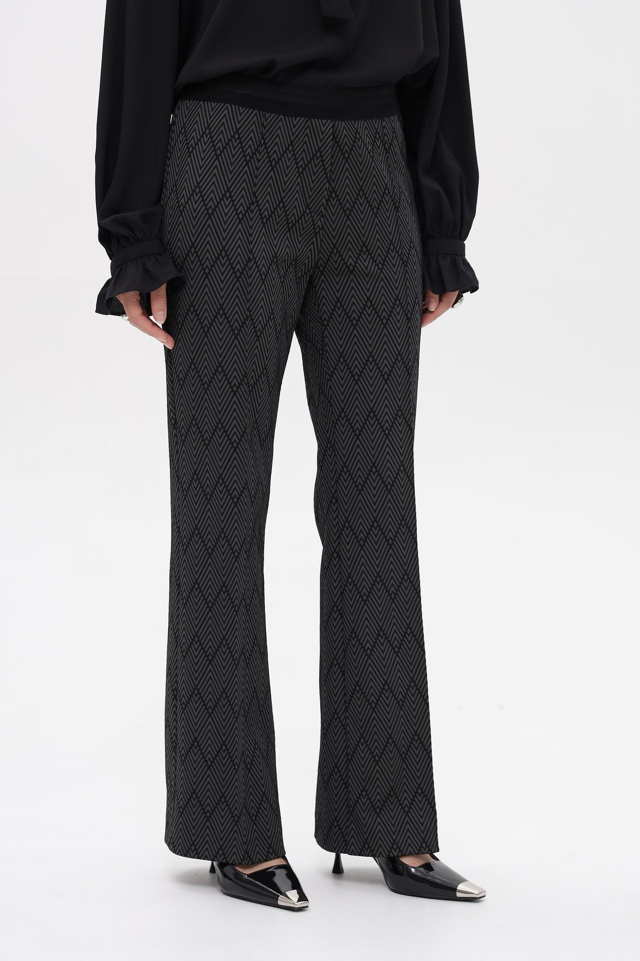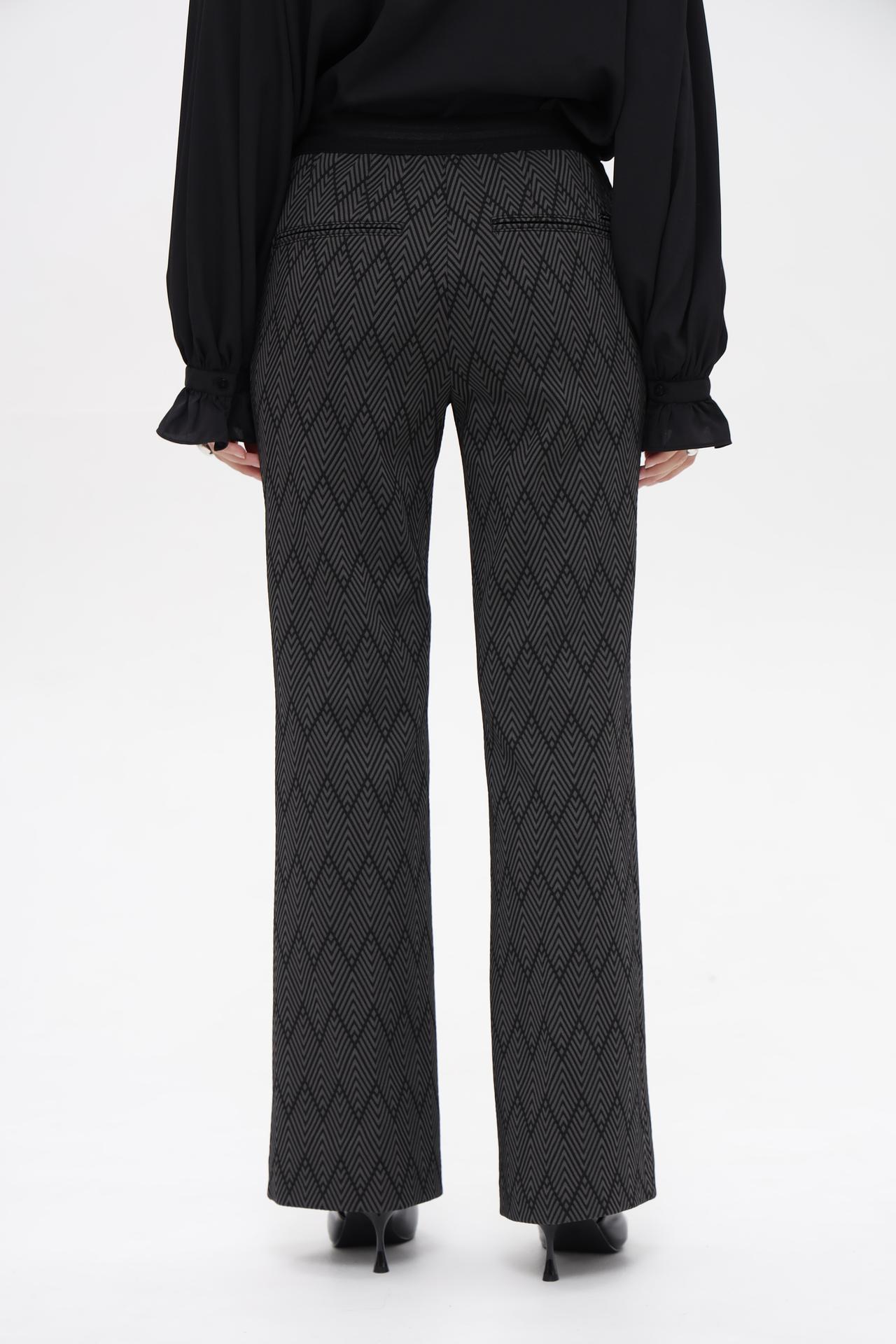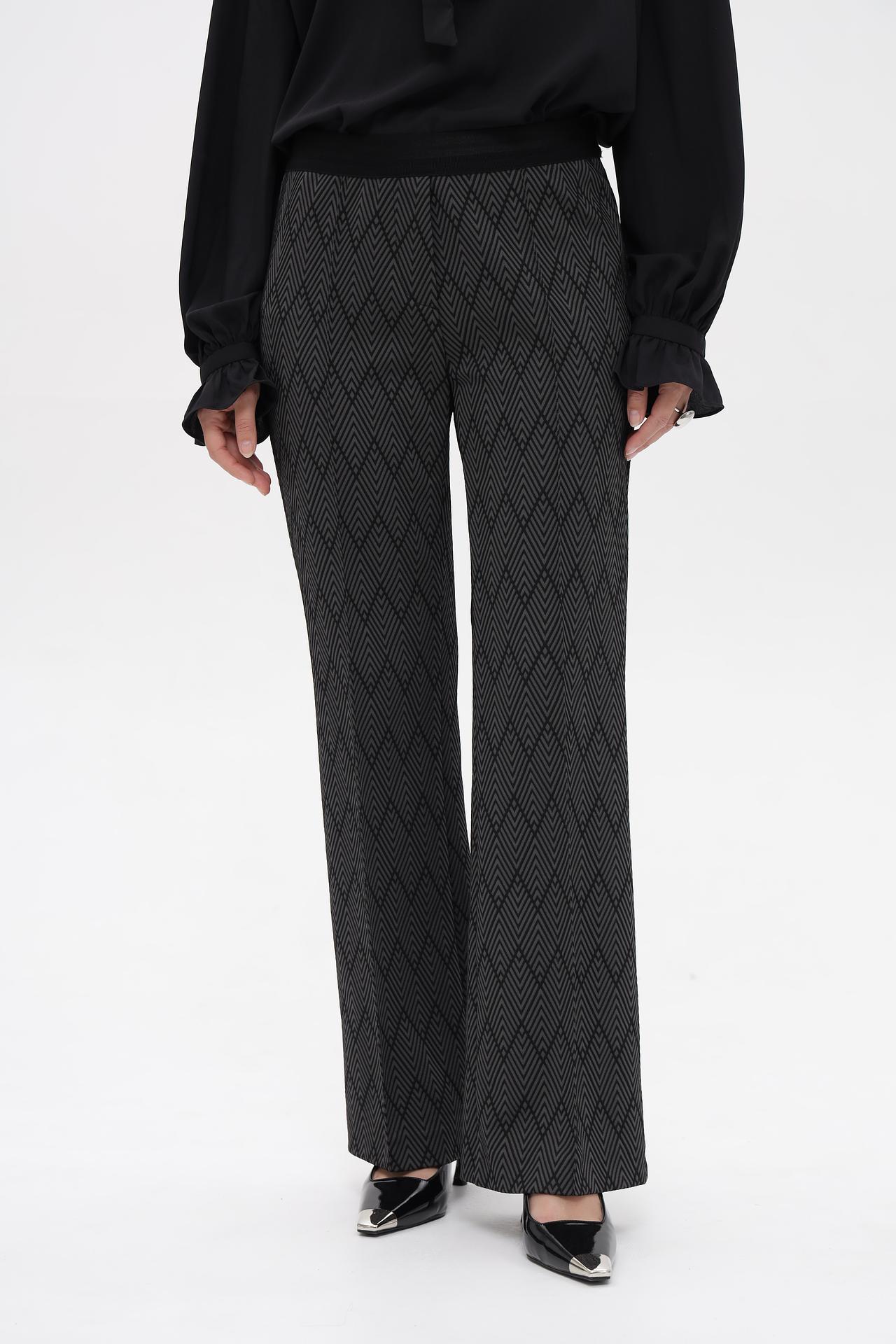 - Дизайн: Изумительный принт в виде ромбов выполнен в тон основной ткани, что придает брюкам утонченность. Эта модель отлично сочетается как с деловыми блузами, так и с более кэжуал-верхом.
