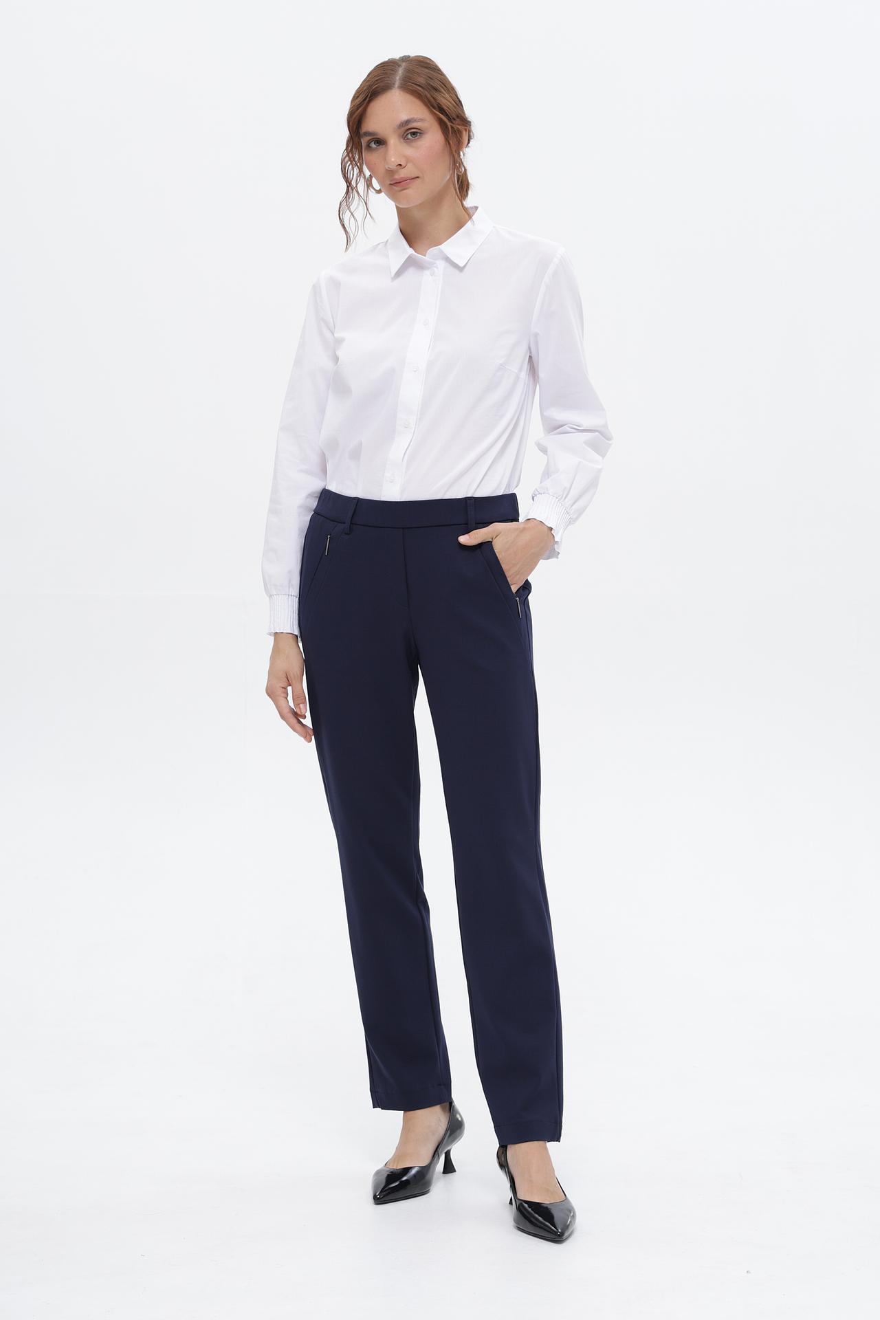 - Универсальность: Брюки легко сочетаются с блузками, рубашками, топами и жакетами, позволяя создавать разнообразные стильные образы.