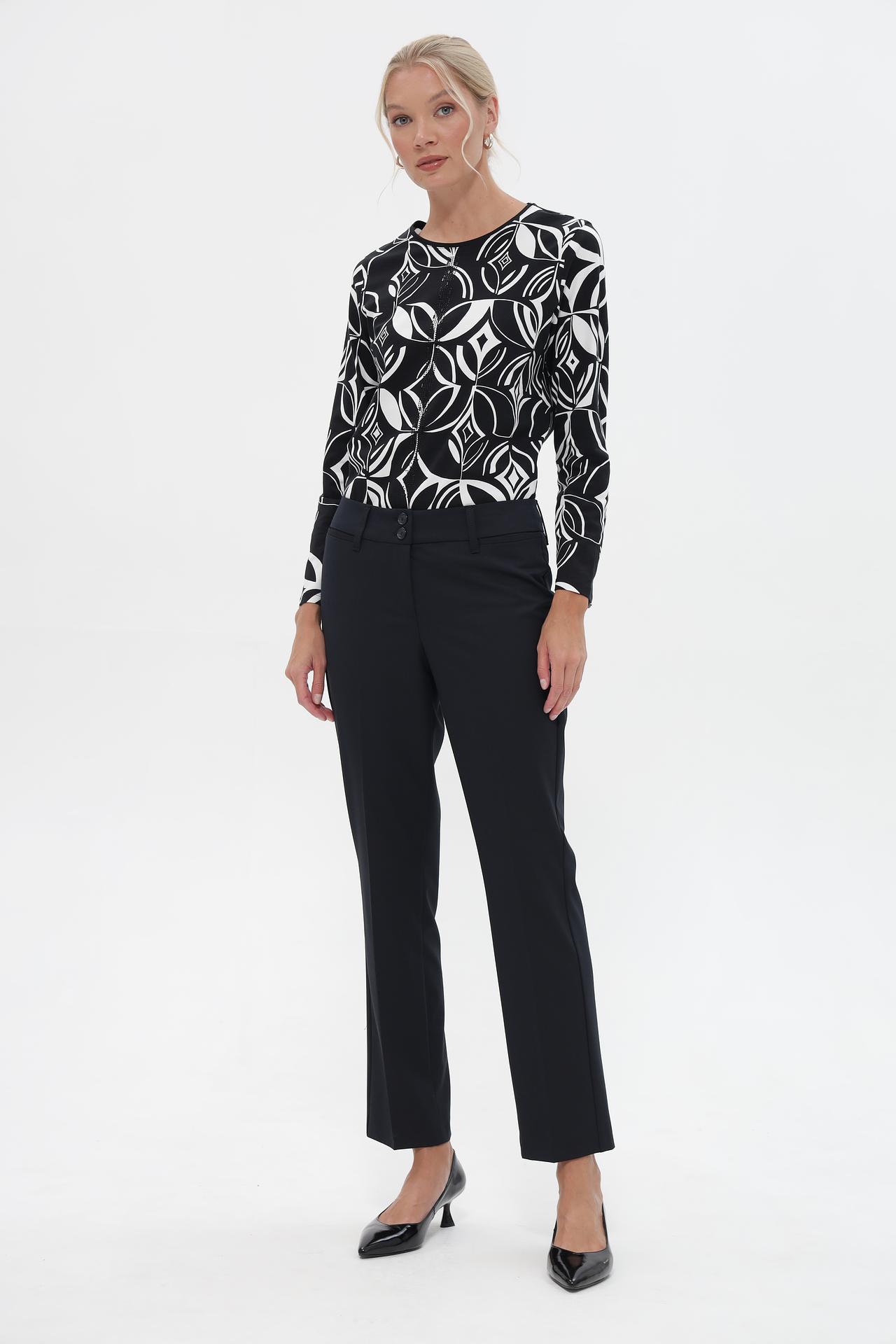 - Крой: Классический прямой крой обеспечивает элегантность и визуально удлиняет ноги. Брюки не стесняют движений, что делает их идеальными для активного образа жизни.