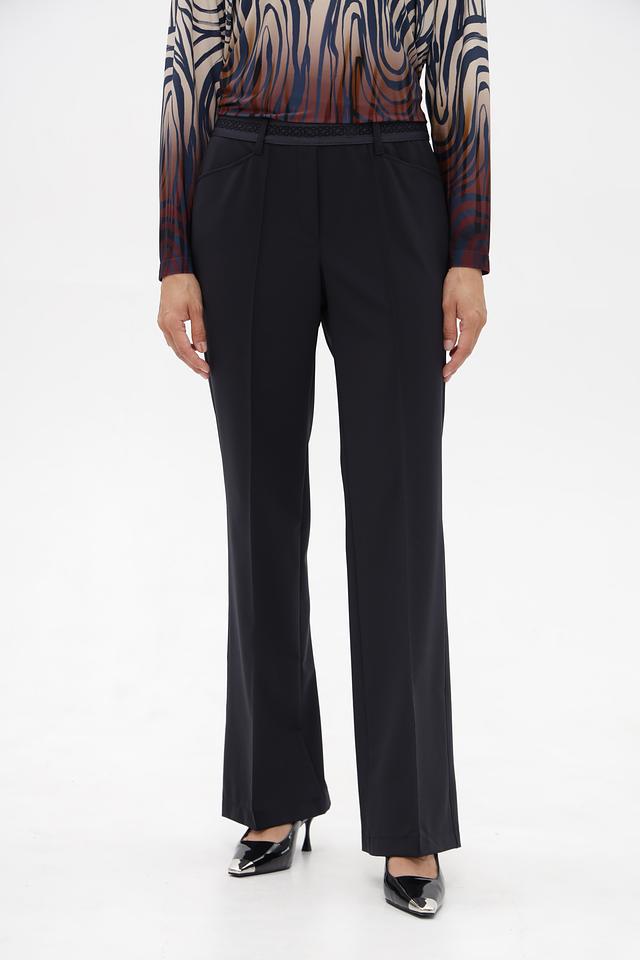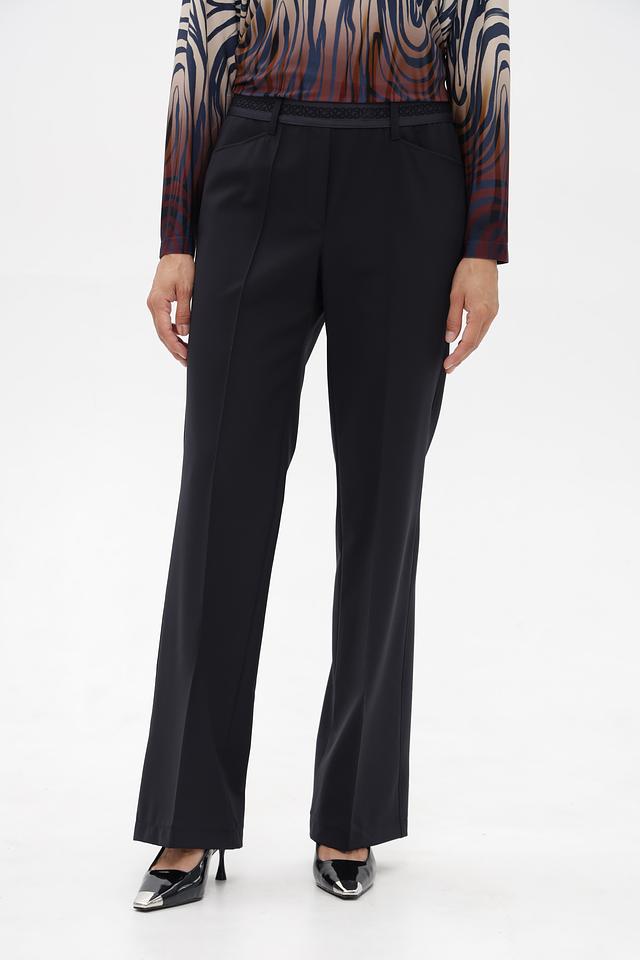 Брюки имеют прямой крой, который обеспечивает комфортную посадку и свободу движений. Пояс на талии дополнен эластичной вставкой, обеспечивающей удобство и надежную фиксацию.