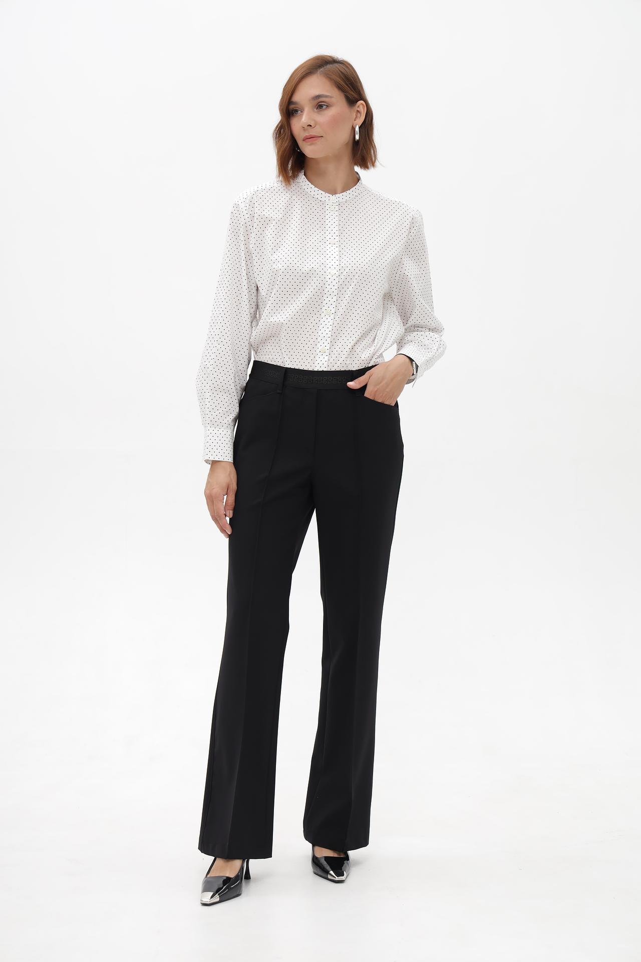- Классический крой: Брюки прямого силуэта со слегка расклешенным книзу низом визуально удлиняют ноги и создают гармоничный пропорциональный образ.