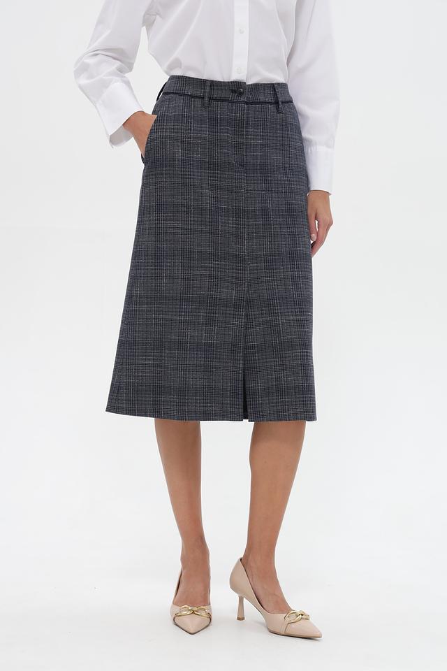 Юбка Gardeur миди синего цвета в классическую клетку. Изготовлена из сочетания полиэстера, вискозы и шерсти для комфорта и долговечности. Идеально подходит для создания делового и повседневного образа. Состав: полиэстер 57%, вискоза 32%, шерсть 9%, эластан 2%