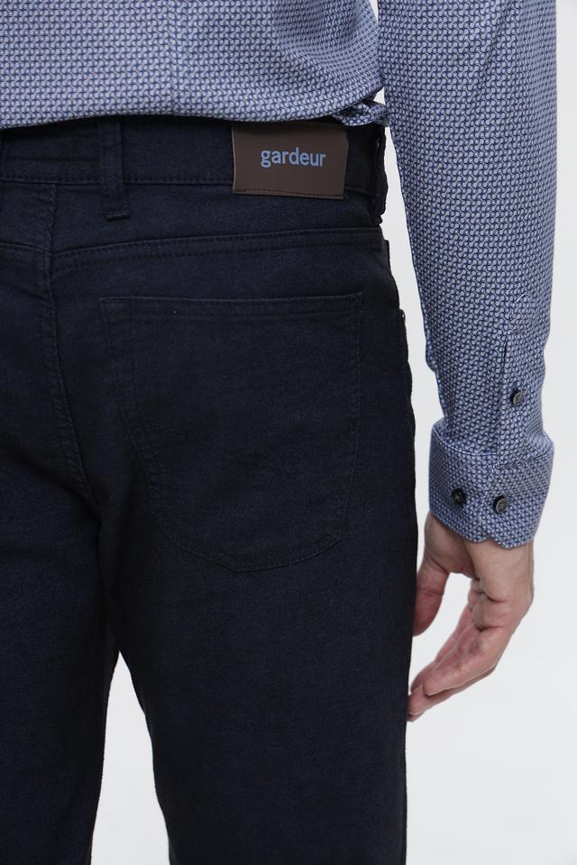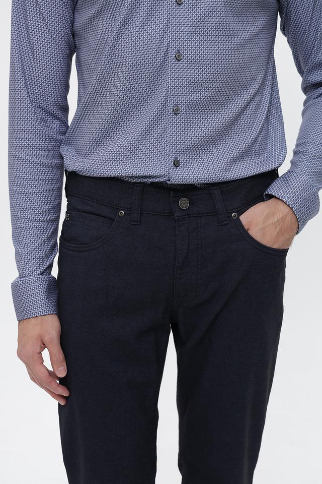 Мужские брюки Gardeur классического темно-синего цвета. Изготовлены из хлопка с добавлением полиэстера, вискозы и эластана для комфорта и долговечности. Состав: хлопок 58%, полиэстер 27%, вискоза 14%, эластан 1%