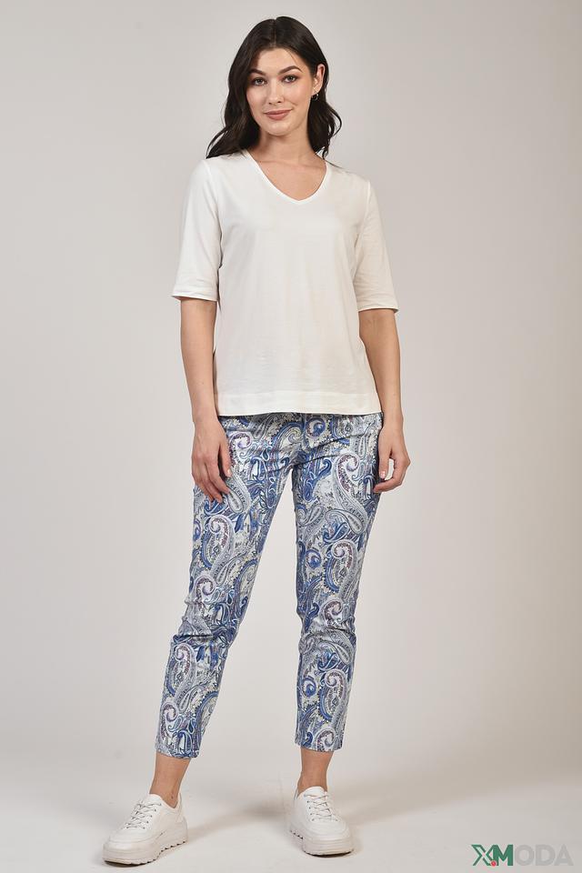 Капри имеют яркий и запоминающийся принт пейсли в сине-белой гамме, который добавит изюминку вашему стилю. Классический крой и удобная длина делают эти капри универсальным выбором для повседневной носки.
