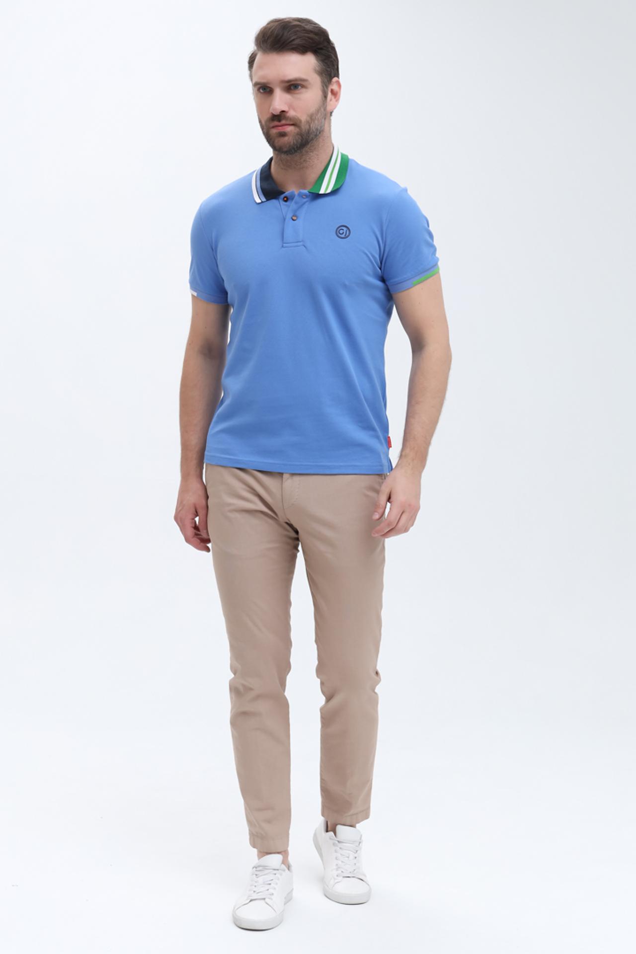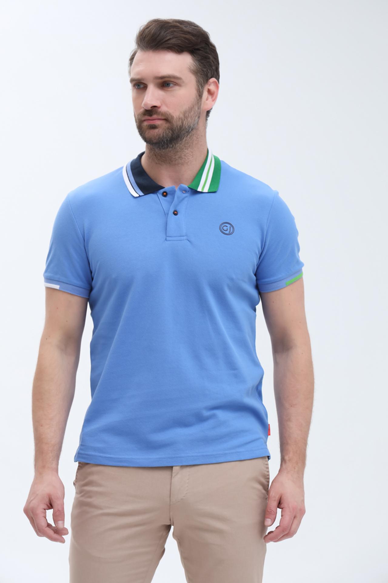 Мужское поло Gaudi голубое с отделкой