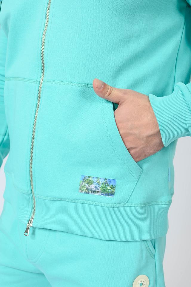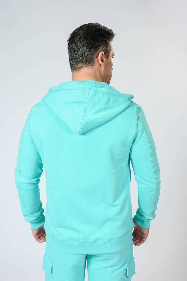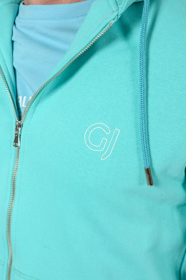 Мужской кардиган от бренда Gaudi выполнен в приятном голубом цвете. Модель застегивается на молнию, имеет капюшон со шнурками для регулировки. На груди расположен вышитый логотип бренда.
