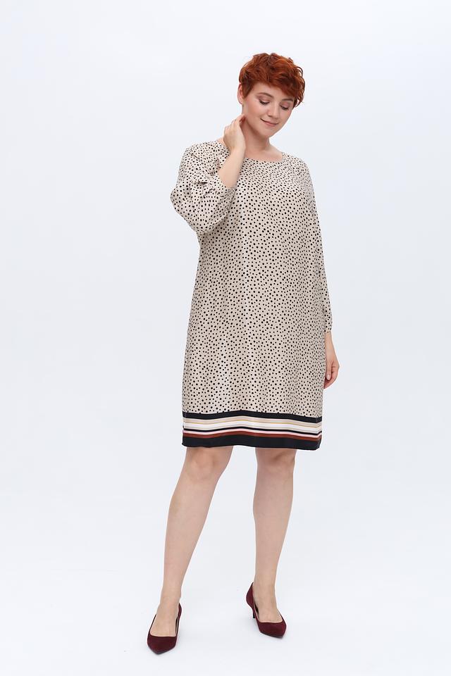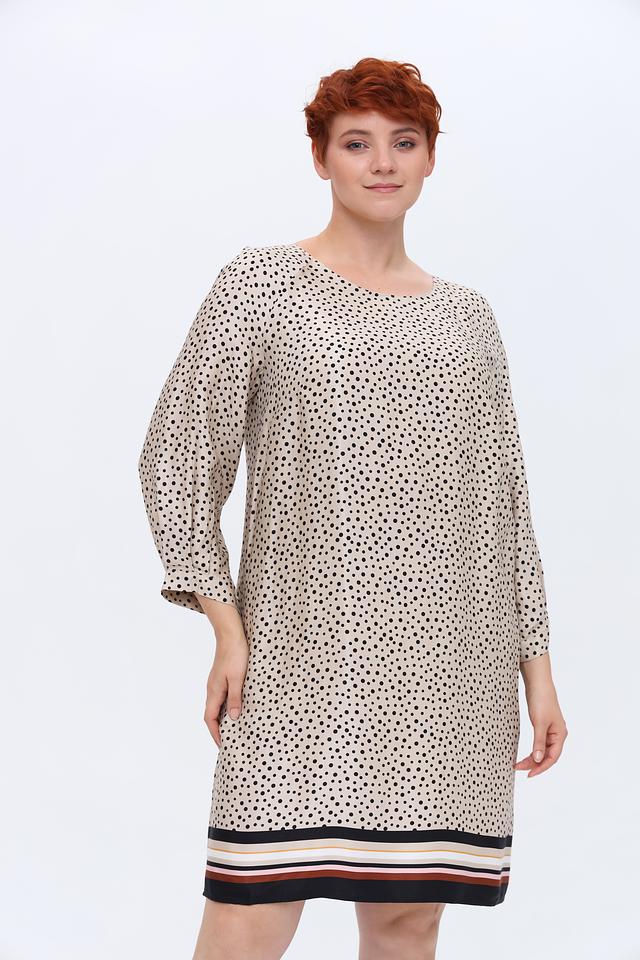 Платье Gerry Weber бежевого цвета с принтом в горошек и полосатой отделкой низа. Модель выполнена из мягкой вискозы, обеспечивающей комфорт в носке. Идеальный выбор для создания повседневного образа. Состав: вискоза 100%