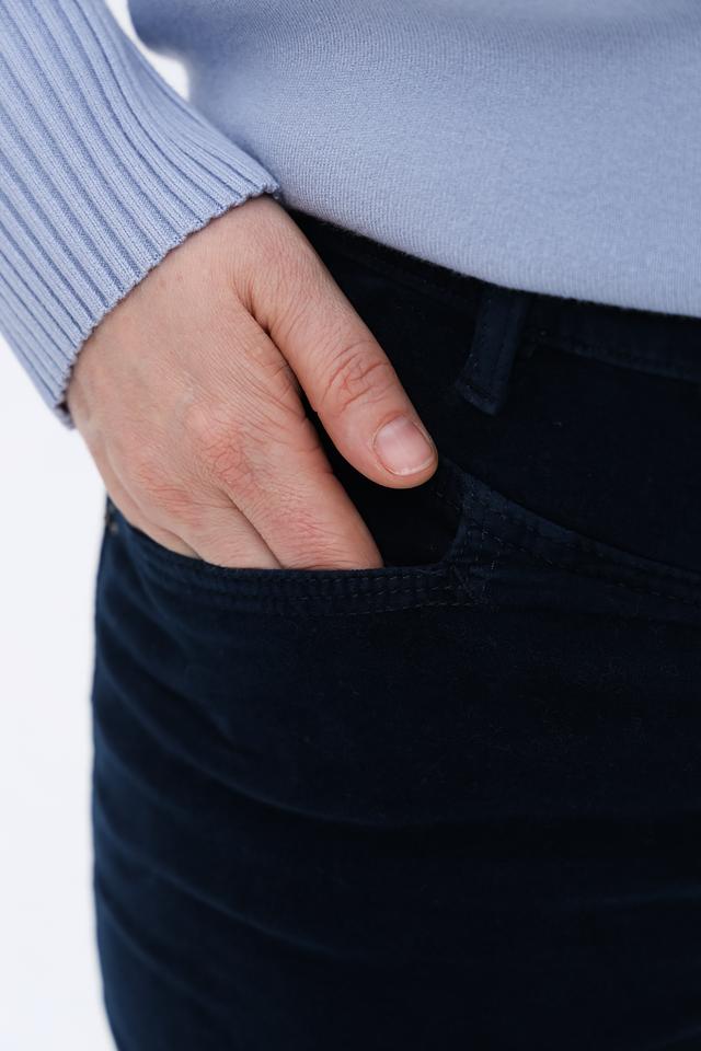 Дизайн брюк лаконичный и элегантный, без лишних деталей. Застежка на молнию и пуговицу. Модель оснащена функциональными карманами спереди и сзади. Вельвет приятен на ощупь и хорошо держит форму.
