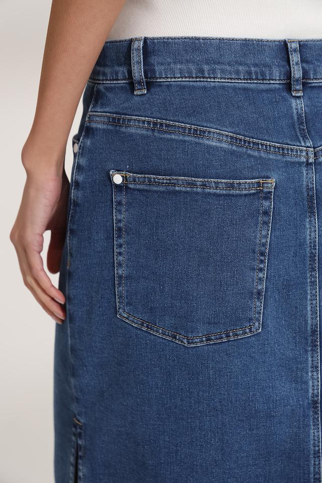 Синяя джинсовая юбка Gerry Weber длиной миди – стильное и комфортное решение для повседневного образа. Модель выполнена из хлопка с добавлением эластана, что обеспечивает удобную посадку и свободу движений. Состав: хлопок 92%, эластомультиэстер 6%, эластан 2%