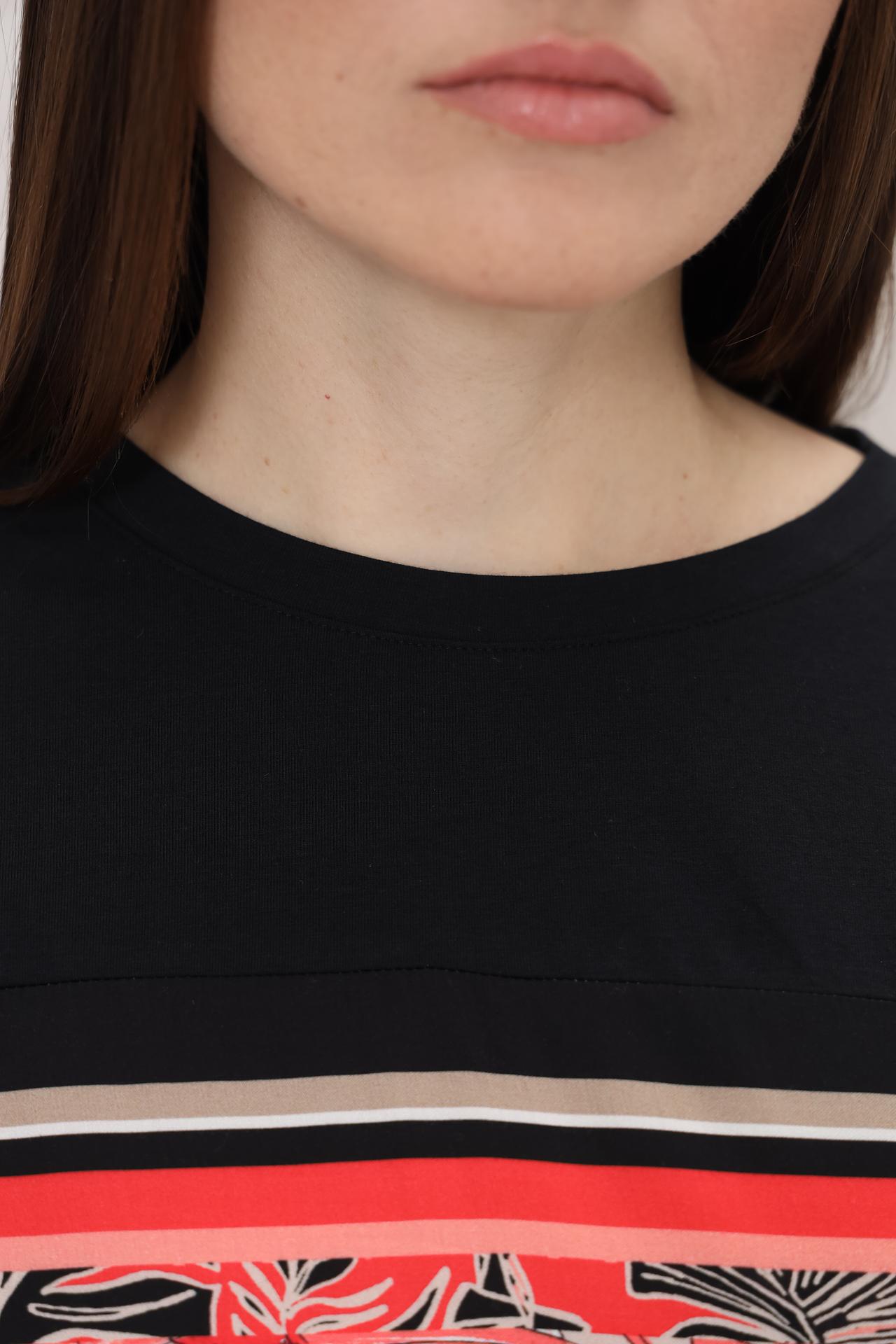 Элегантная блуза от Gerry Weber – идеальное дополнение к вашему повседневному и деловому гардеробу. Модель черного цвета с ярким цветочным принтом на передней части и стильным бантом внизу придает образу женственности и изысканности. Прекрасно сочетается с брюками и юбками, создавая актуальные модные образы.