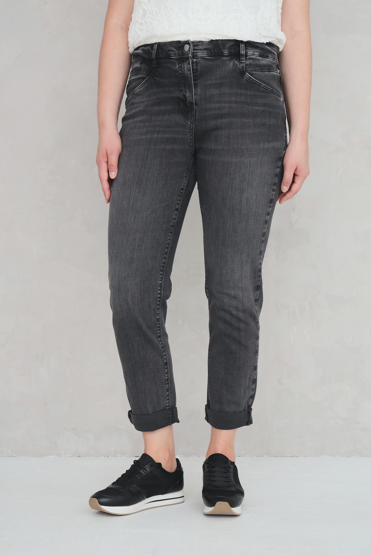 - Цвет: Серый. Глубокий серый оттенок придает джинсам универсальность, позволяя комбинировать их как с яркими, так и с нейтральными цветами в одежде.
