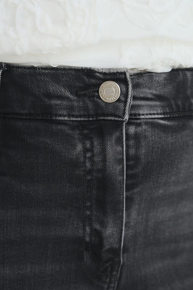 Джинсы имеют укороченный крой и слегка зауженный силуэт, что делает их универсальными для создания различных образов. Потертости добавляют им непринужденности и винтажного шарма. Высокая посадка обеспечивает комфортную посадку по фигуре.