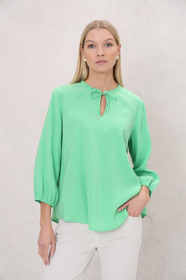 Мятная блуза Gerry Weber EDITION из модала с рукавами 3/4 и завязками на горловине. Легкая и воздушная модель станет отличным дополнением к вашему гардеробу. Состав: модал 84%, полиэстер 16%