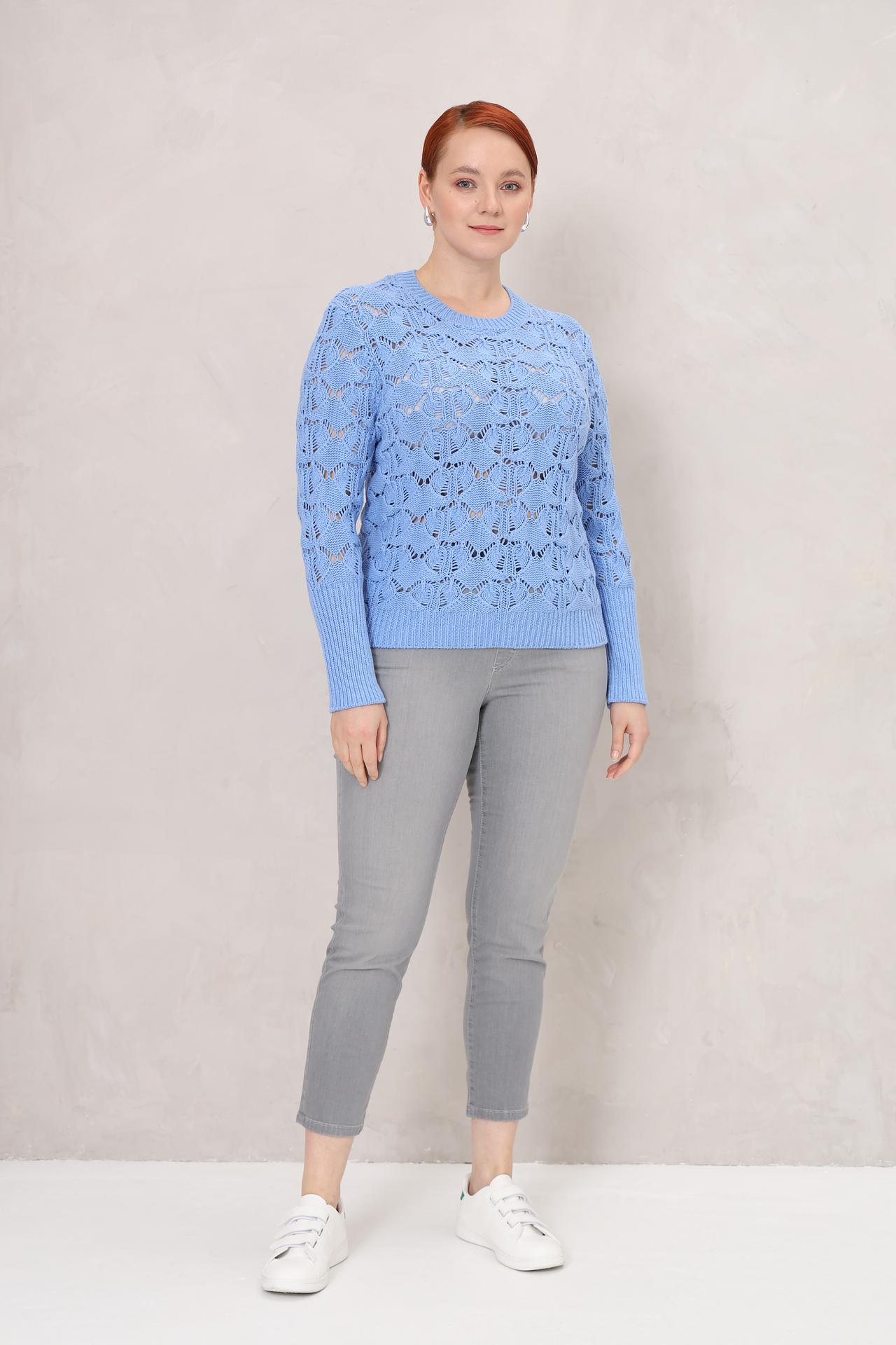 - Дизайн: Ажурная вязка создает уникальный и привлекательный узор, добавляющий изделию легкости и женственности. Рифленые манжеты и низ пуловера обеспечивают идеальную посадку.