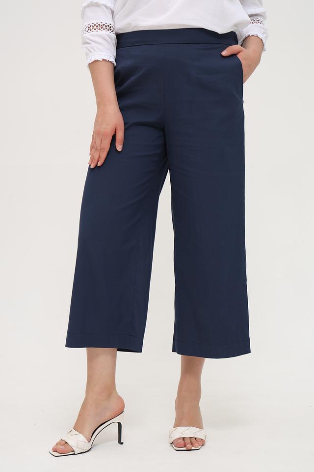 Брюки имеют прямой крой и укороченную длину, что делает их идеальным выбором для теплого времени года. Классическая посадка на талии и боковые карманы обеспечивают комфорт и функциональность.
