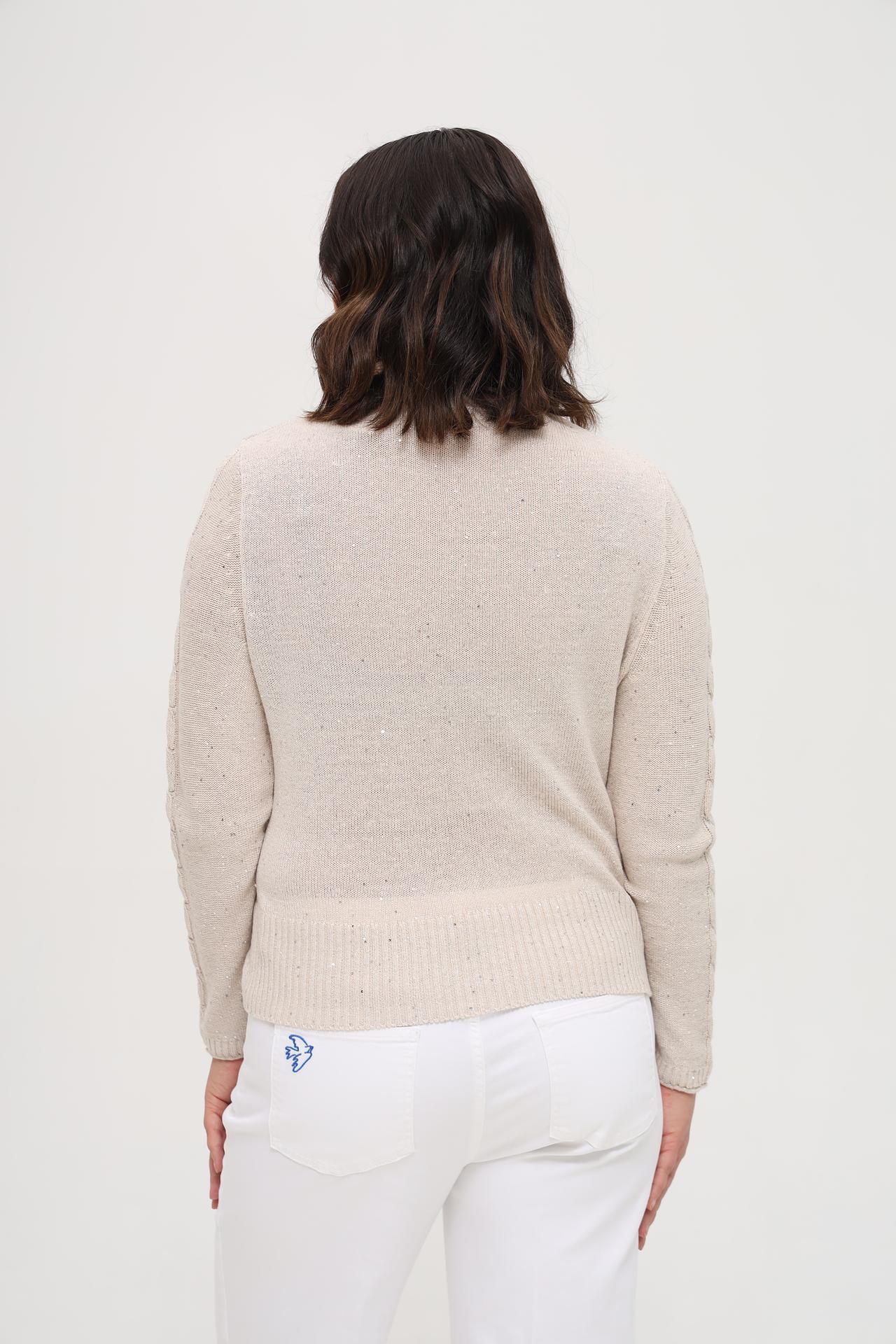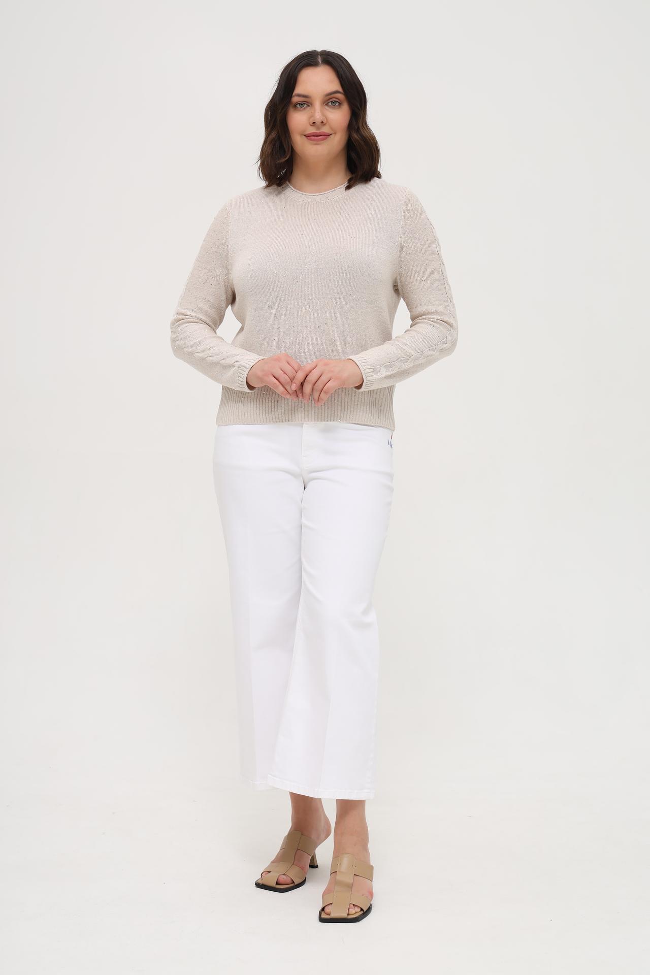 - Натуральный состав: Пуловер изготовлен из смеси льна и вискозы, что обеспечивает комфорт и позволяет коже дышать.
