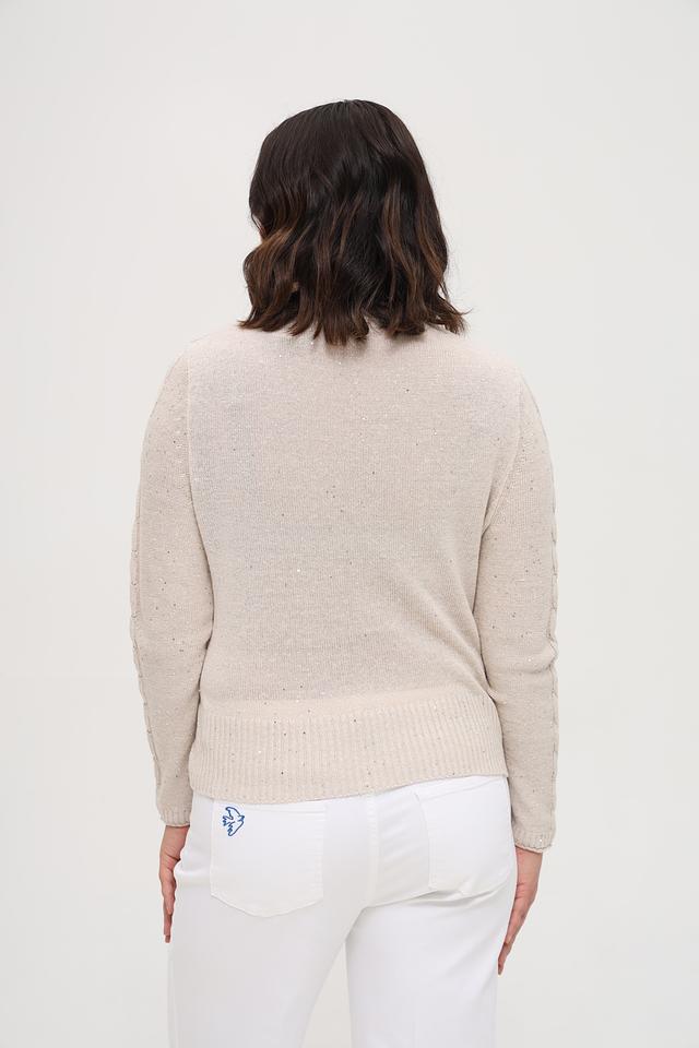 Этот стильный пуловер от Gerry Weber выполнен в нежном бежевом цвете и украшен деликатным мерцанием блесток, придающим ему особый шарм.