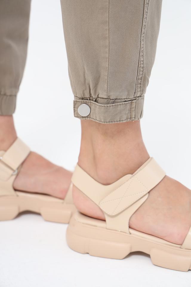 Брюки имеют завышенную талию и свободный крой, который не сковывает движений. Утяжка на щиколотке позволяет регулировать посадку и создавать различные силуэты. На брюках предусмотрены функциональные карманы.