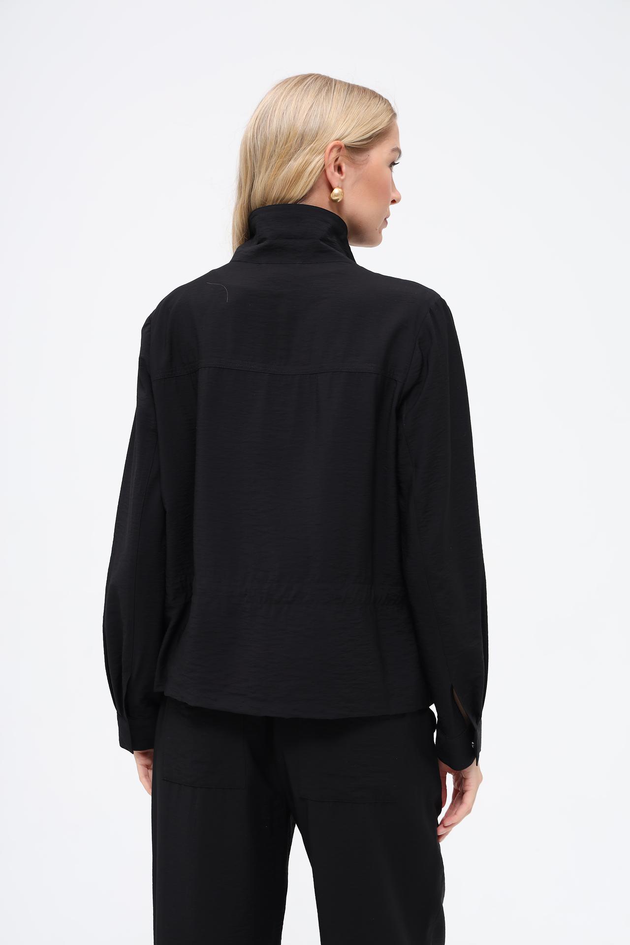 - Универсальность: Чёрный жакет легко впишется в любой гардероб. Носите его с брюками, юбками или джинсами, создавая как строгие офисные, так и расслабленные повседневные образы.