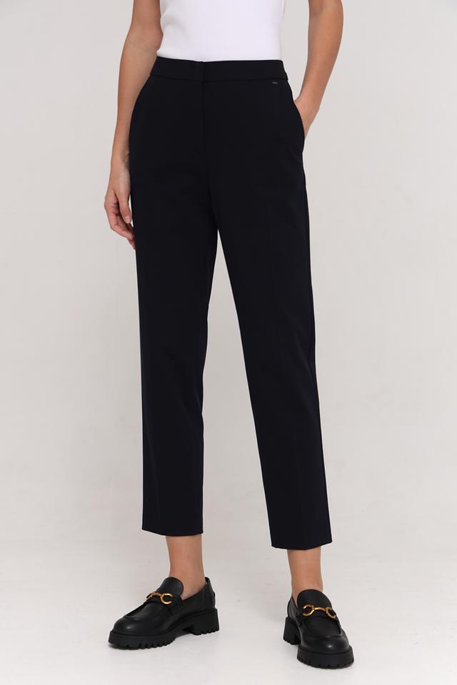 Модель имеет стандартную длину и прямой силуэт, который визуально стройнит фигуру. Брюки идеально сочетаются с блузками, рубашками и жакетами, создавая стильные и элегантные образы. Состав: полиамид 51%, вискоза 38%, эластан 11%.