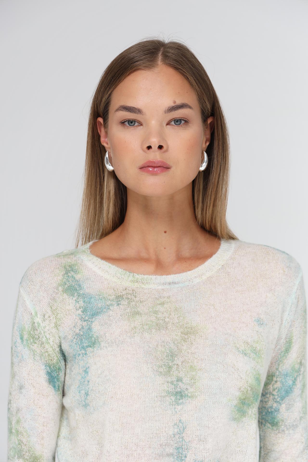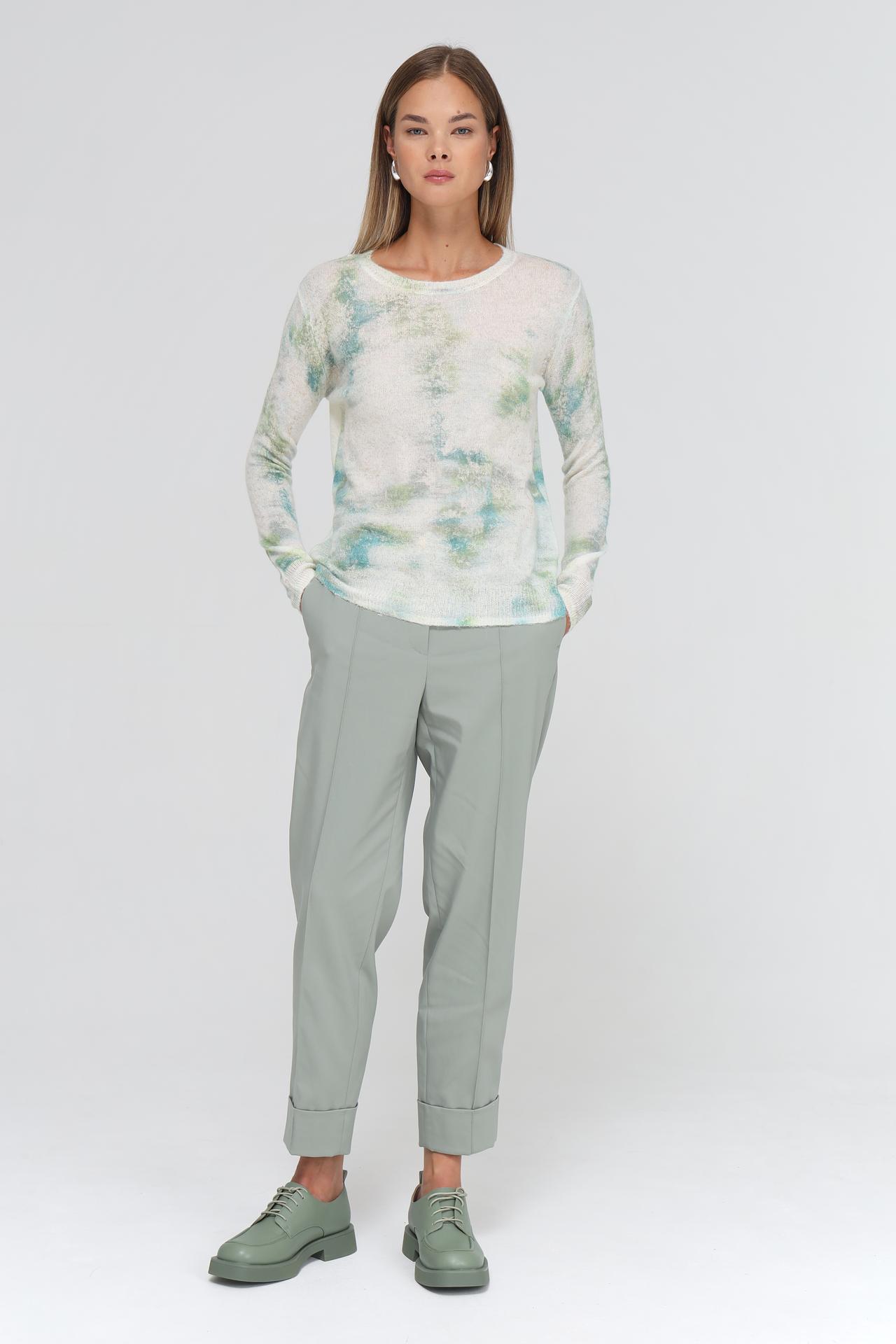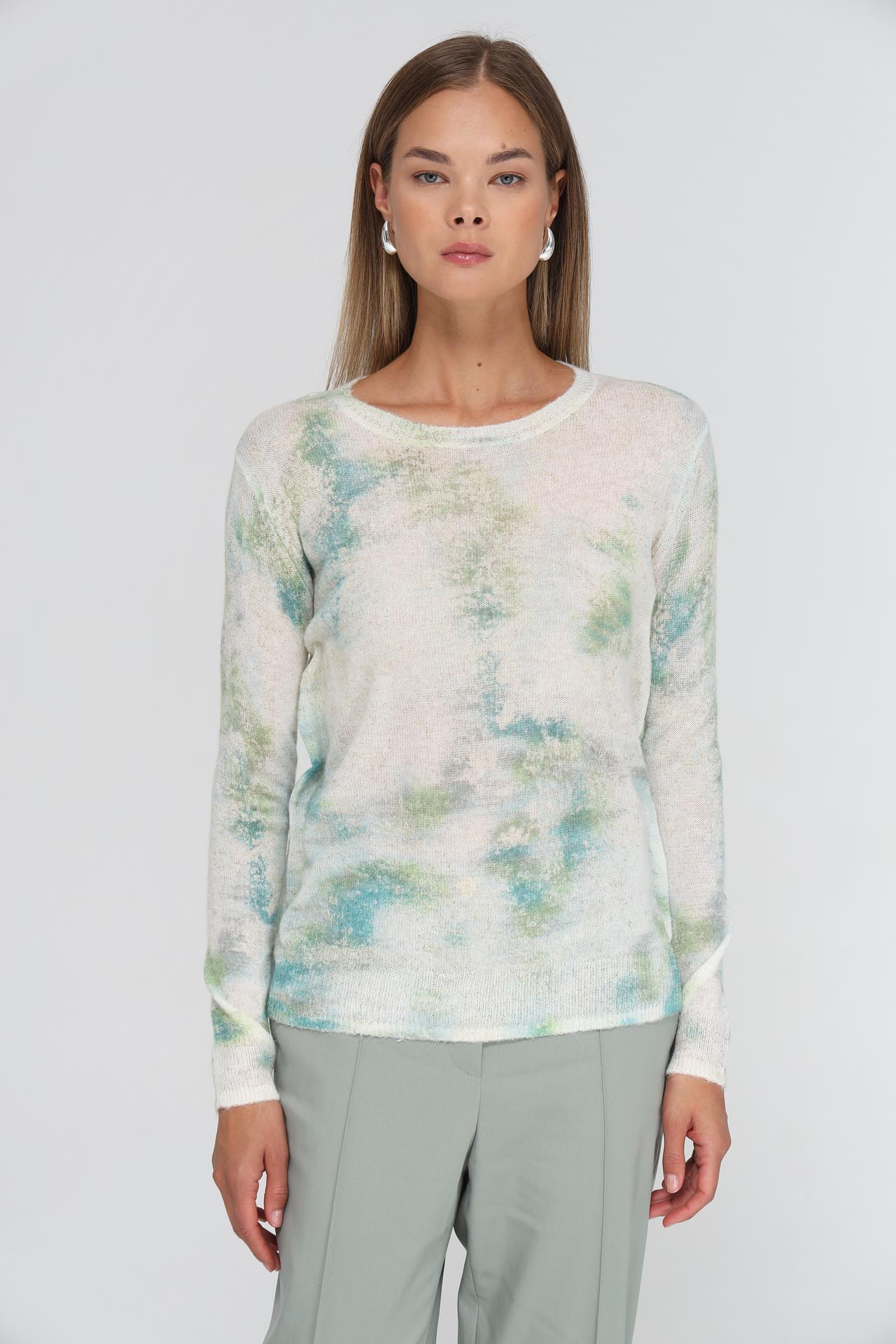 Лёгкий женский пуловер Gerry Weber с круглым вырезом и длинными рукавами станет стильным дополнением к вашему гардеробу. Модель выполнена из высококачественной смеси полиакрила, полиамида, шерсти и альпака, обеспечивая комфорт и мягкость в носке. Дизайн с абстрактным принтом в нежных оттенках белого, зелёного и голубого создаёт эффектный и современный образ, идеальный для повседневного использования или особых случаев.