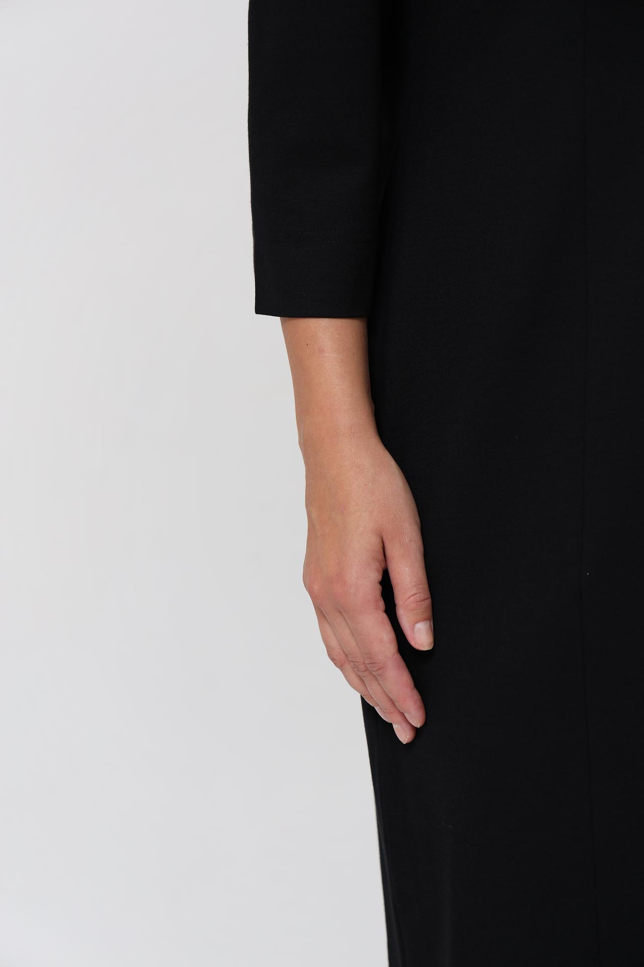 Это платье станет основой как делового, так и повседневного гардероба, легко сочетаясь с различными аксессуарами и обувью. Универсальный черный цвет и классический крой делают его незаменимым элементом в гардеробе современной женщины.