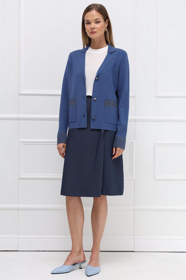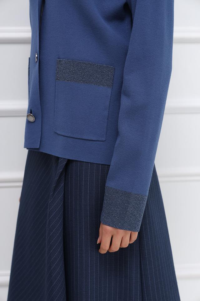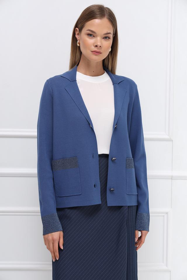 Рукава жакета украшены вставками с мерцающим узором, что придает изделию особый шарм. Жакет выполнен из высококачественной вискозы и полиэстера, что обеспечивает комфорт в носке и долговечность.