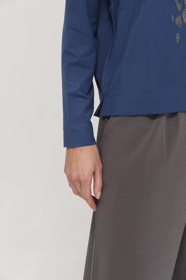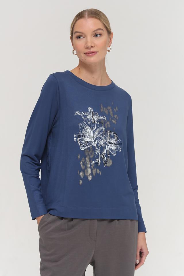 Синяя футболка Gerry Weber EDITION с длинным рукавом украшена цветочным принтом и буквами. Изготовлена из мягкой вискозы с добавлением эластана для комфорта и хорошей посадки. Состав: вискоза 94%, эластан 6%