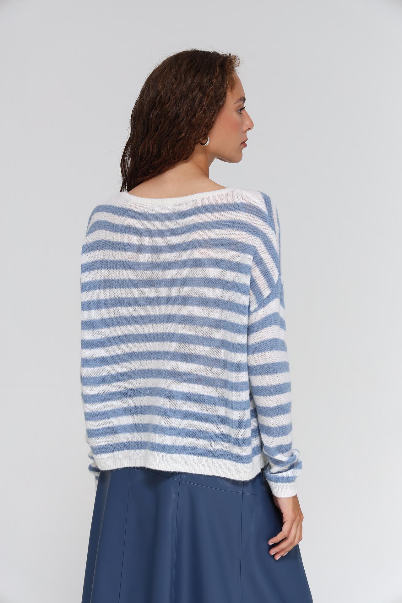 Пуловер Gerry Weber полосатый голубой белый с узором