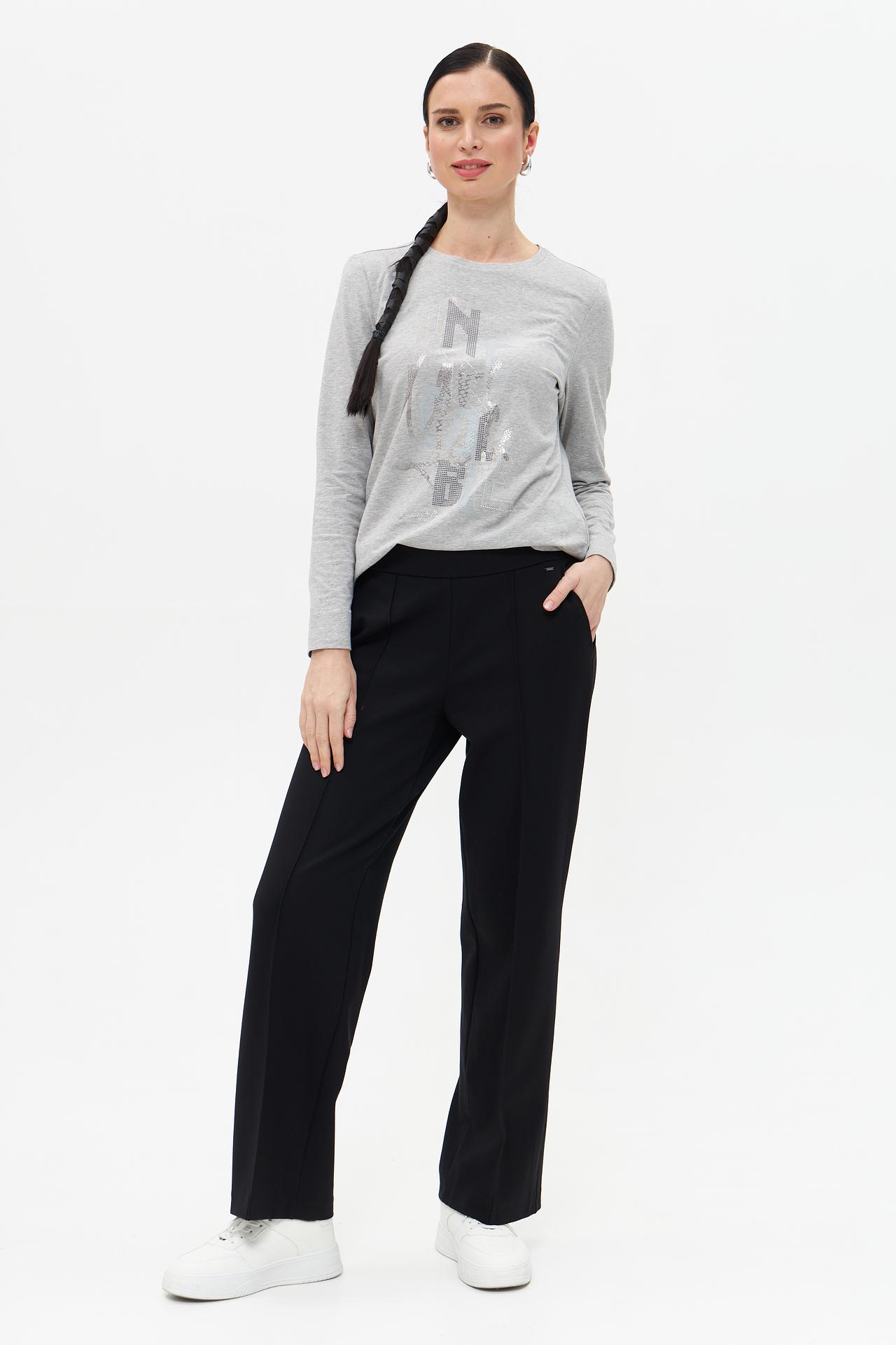 - Крой: Классический прямой крой. Брюки имеют универсальный прямой силуэт, который визуально удлиняет ноги и подходит для большинства типов фигур. Вертикальные швы добавляют изящества и стройнят.