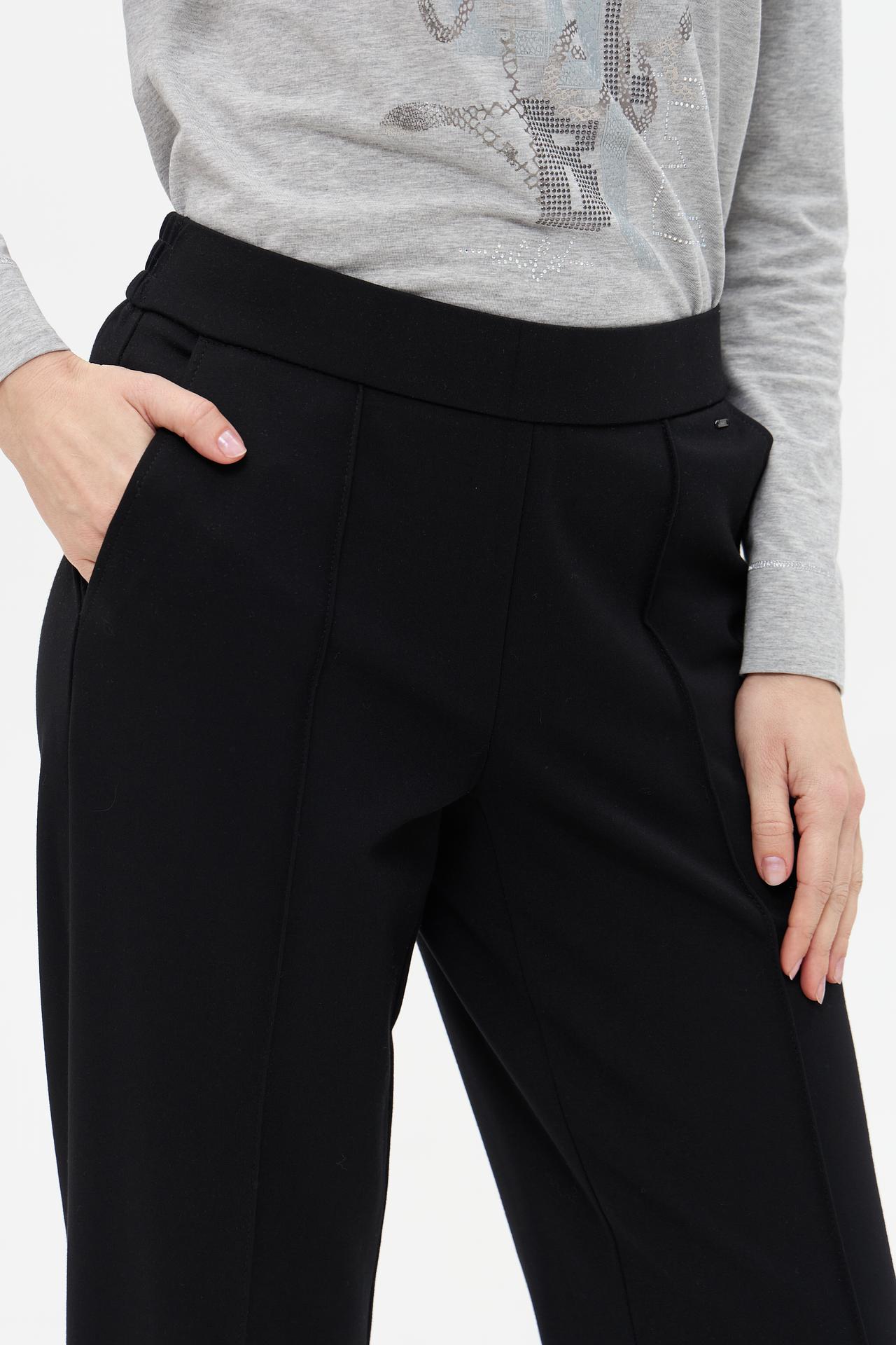 - Дизайн: Минималистичный дизайн с декоративными швами. Брюки отличаются лаконичным дизайном, акцентированным изящными вертикальными швами спереди, что придает модели особую элегантность и современный вид.